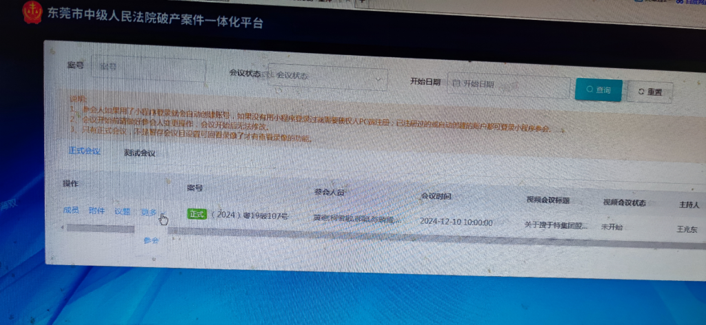 2024年12月10日9:30(正式会议前半小时)-10:00为签到时间,债权人应当在签到时间内登录一体化平台一债权人会议端口进行签到。
