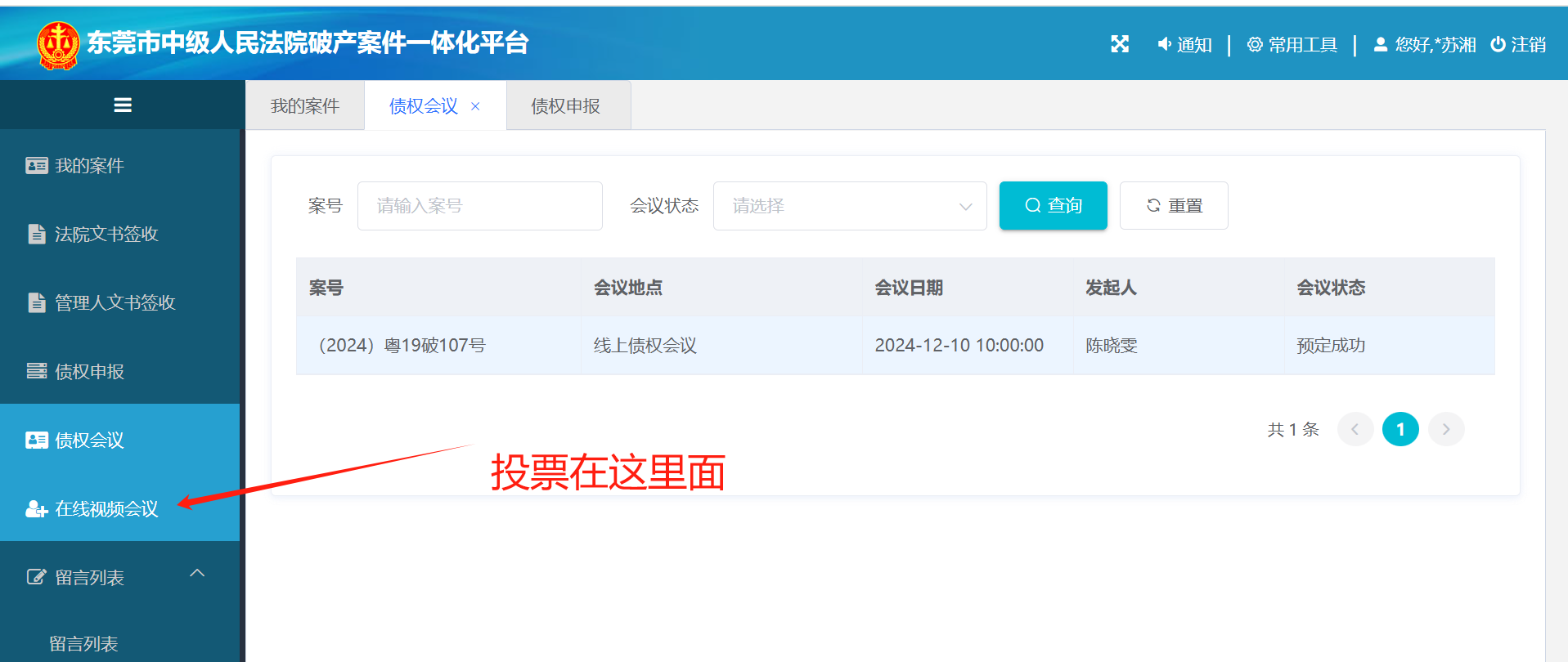 电脑打开浏览器,访问一体化平台网址(https://pc.dgcourt.gov.cn/pczqr)注册账号,并通过“债权人/债务人”端口登录找到对应会议点击进入会议并进行网络参会。