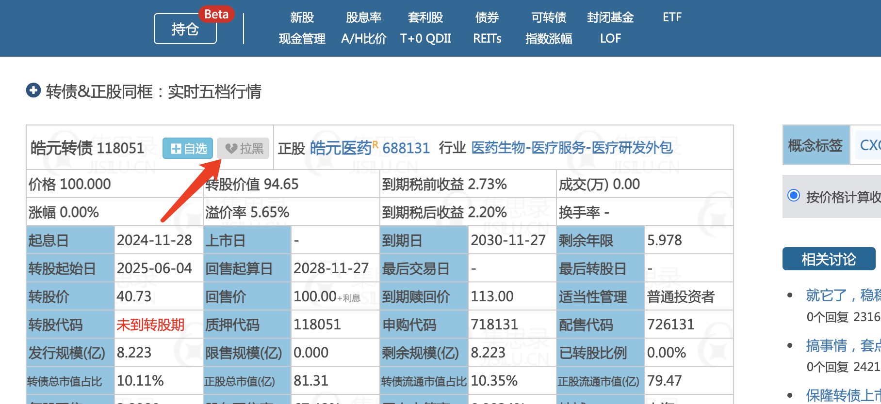 也就是说在所有可转债清单中,我不想看到的,可以“拉黑”对吗?