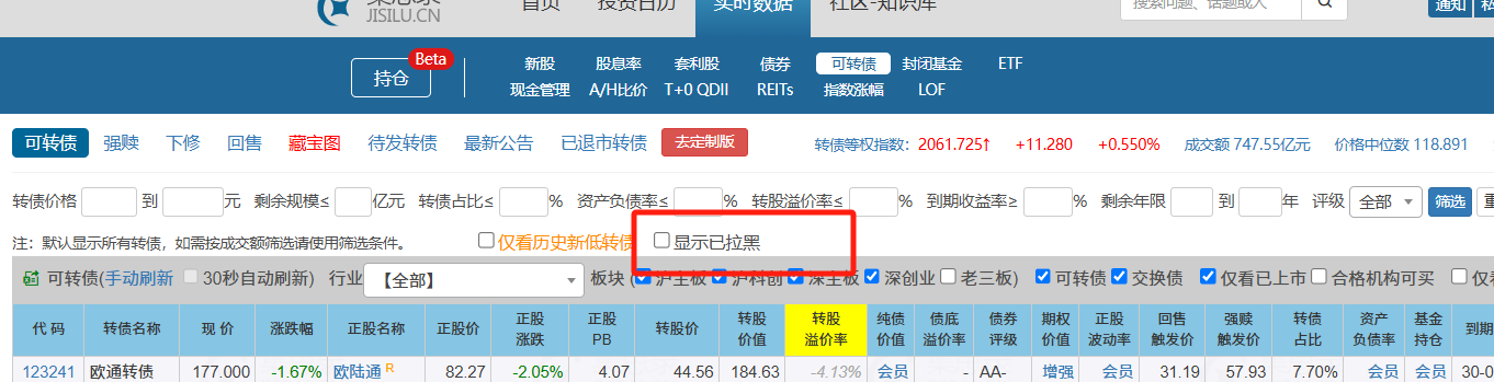 请问一下可转债实时数据板块是不是增加了“拉黑”功能?