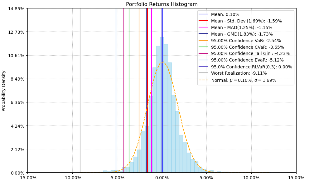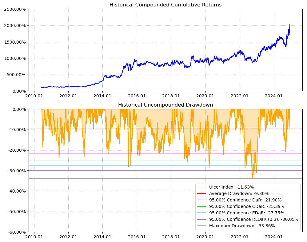 最后看下整个投资组合的情况,日度均值回报在0.10%,比上次测的媒体娱乐行业高了50%,而且8.68%的CVaR波动也不算大。
