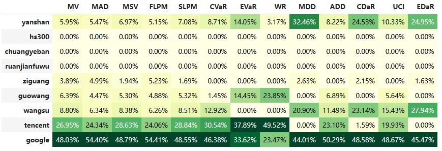 如果换成其他约束,系统给的配置比例也大同小异,基本是在谷歌和腾讯之间做取舍了。