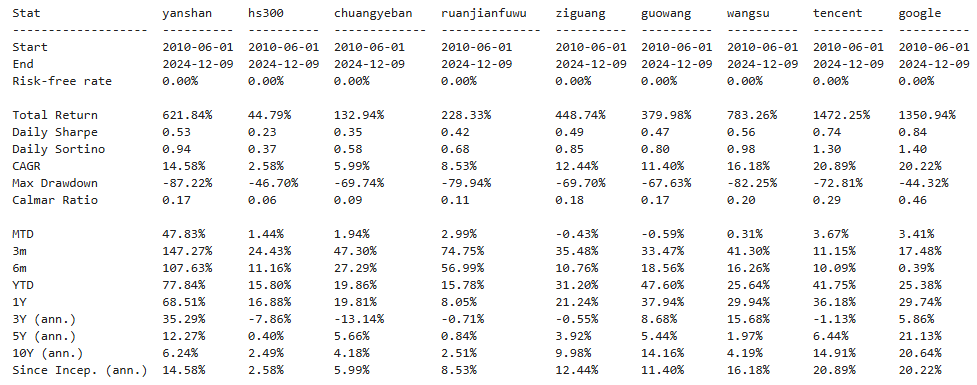 做下回测,选取宽基指数、行业指数、行业内全球对标公司作为一个投资组合进行回溯。