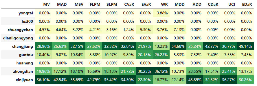 如果换成其他约束,系统给的配置比例也大同小异,基本是在新纪元能源和长江电力之间做取舍了。