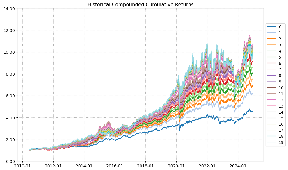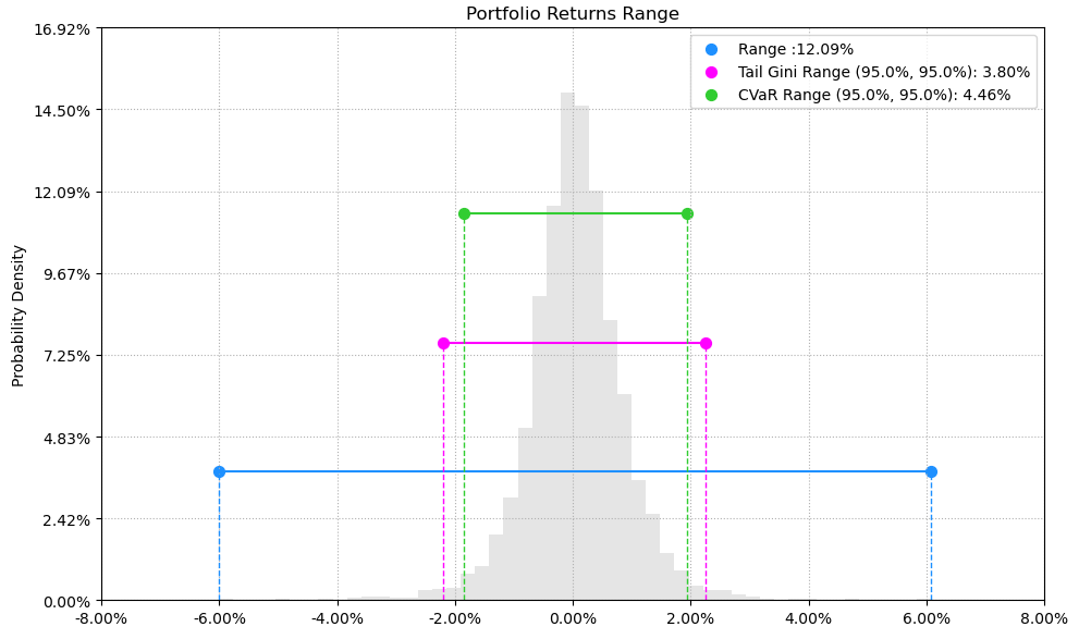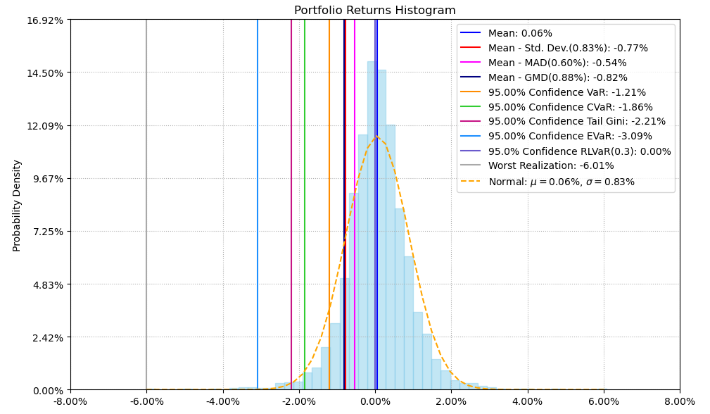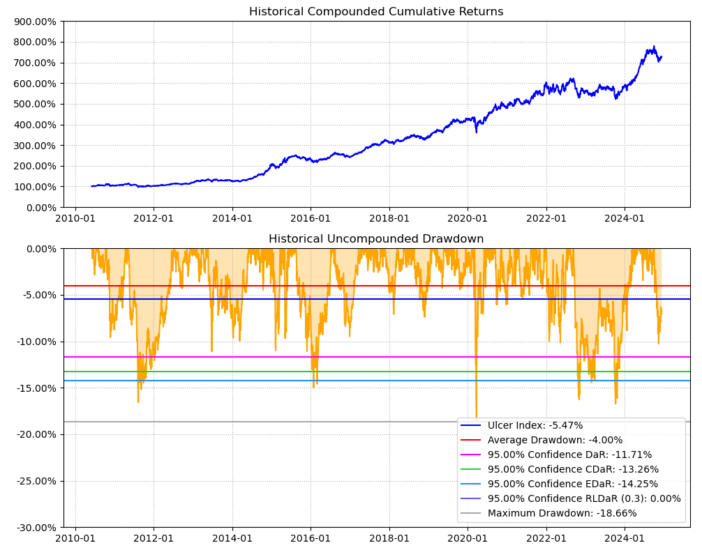 最后看下整个投资组合的情况,日度均值回报在0.06%,比上次测的软件服务行业低了40%,但是4.46%的CVaR波动也相应地小了一半。
