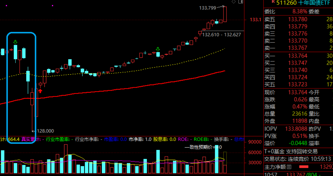 情况不是太好,成交量很大,接近8日那天,但是涨幅却不咋地,时K线量价背离,这种很难持久