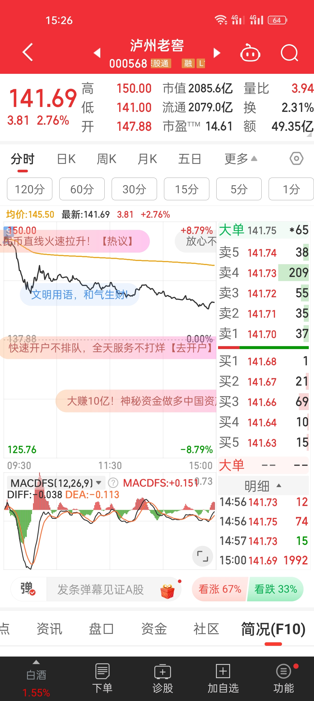 开盘一看泸州老窖涨了7%,马上送给了有缘人