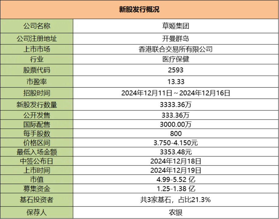 发行市盈率13倍左右,尚可,募集资金1个多亿,老板弟弟是TVB明星,热度比较高。