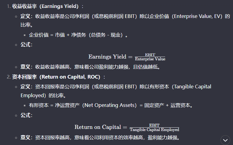 之前,曾经有不少投资人进行了探索,比如投资人乔尔·格林布拉特曾经提出了一个轻松赶上巴菲特的神奇公式。这个名为“神奇公式”(Magic Formula)的投资策略,旨在通过简单的财务指标来选择股票,以实现长期的超额收益。格林布拉特的投资理念基于价值投资的原理,他认为市场并非总是有效的,投资者可以通过分析公司的基本面来识别被市场低估的股票,并通过分散投资来降低风险。
