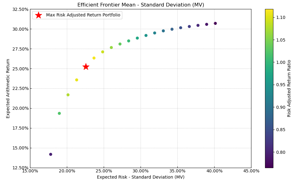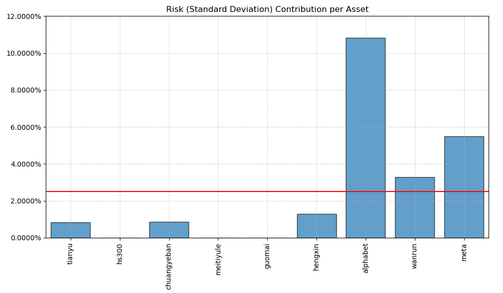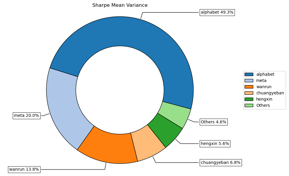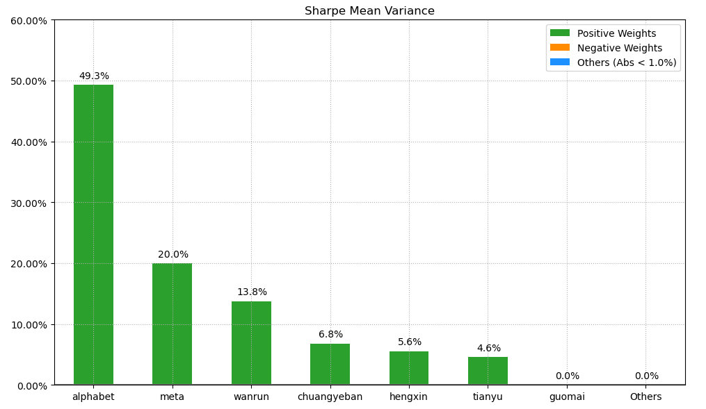 按最高夏普比率配置的话,系统给的权重为4.58%,最大权重给了美股的谷歌占比49.3%。