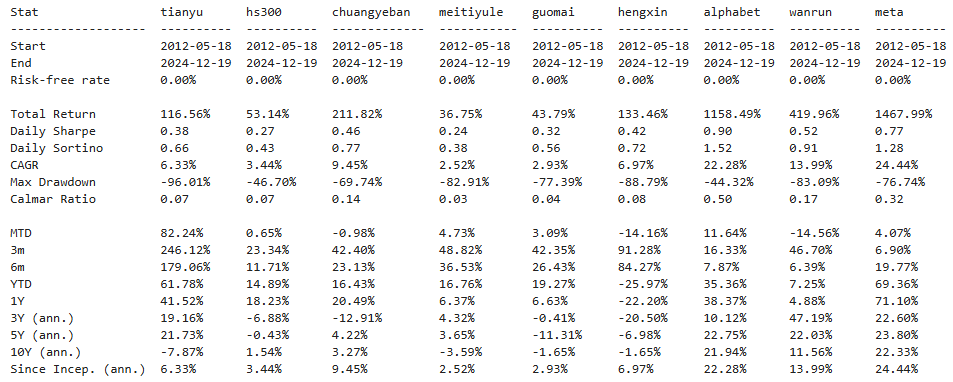 区间累计回报近16倍,最大回撤33.60%,投资组合的表现整体是要好于天娱数科个股的。整个媒体娱乐行业盈利能力优秀,波动尚可,夏普比率1.12也足够拔尖。