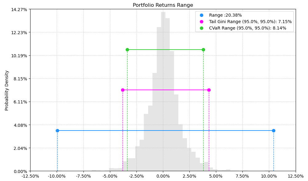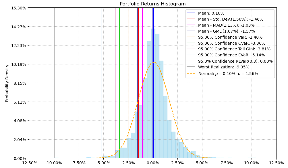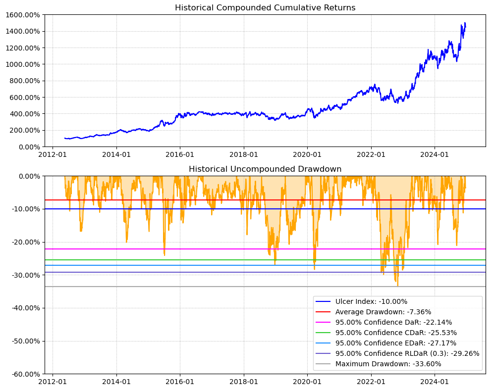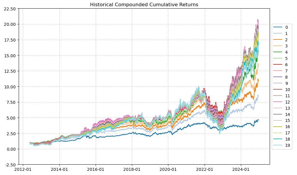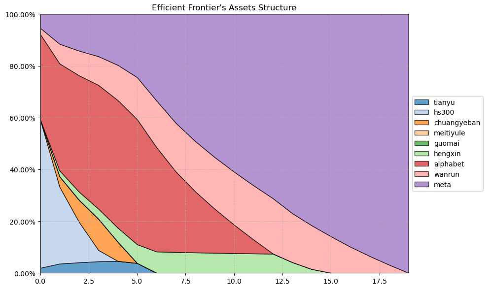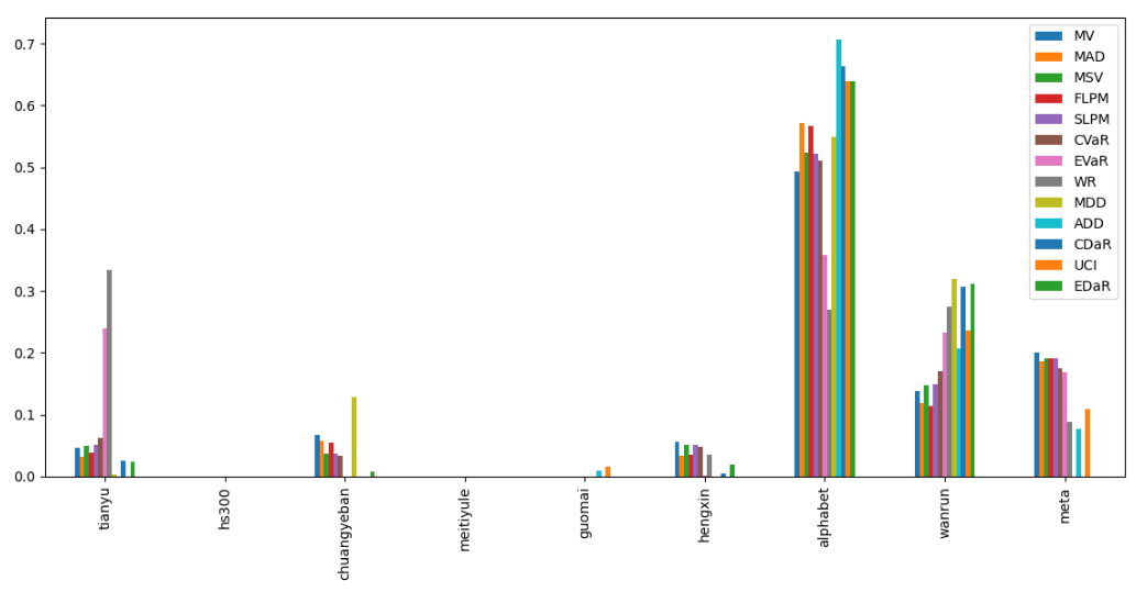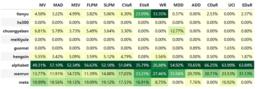 最后看下整个投资组合的情况,日度均值回报在0.10%,比上次测的电气设备行业高了10%,相应地8.14%的CVaR波动也高一点。