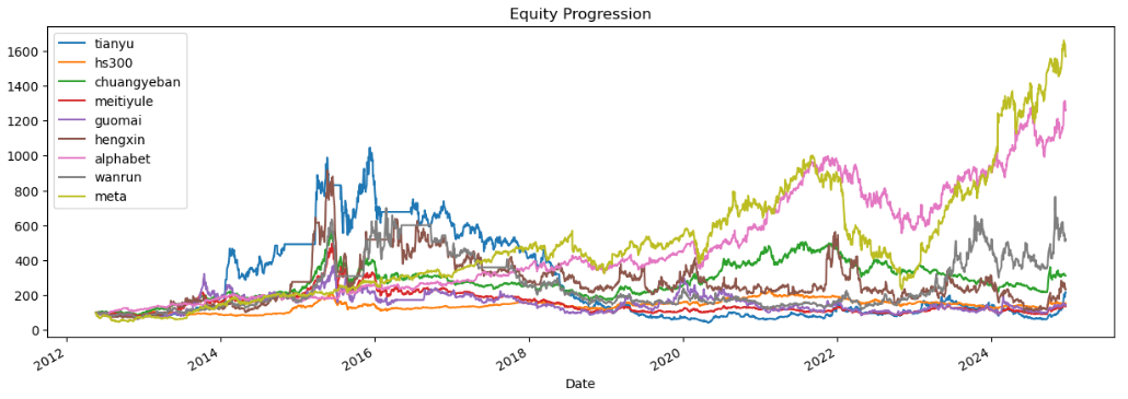 做下回测,选取宽基指数、行业指数、行业内全球对标公司作为一个投资组合进行回溯。
