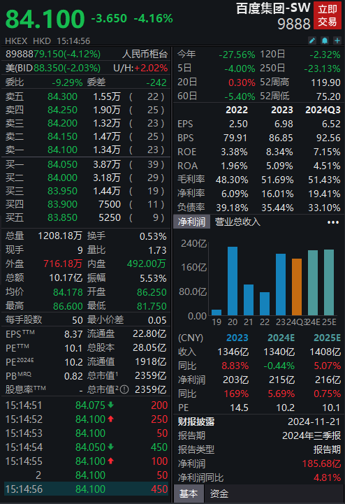请教一下各位百度集团的PB情况