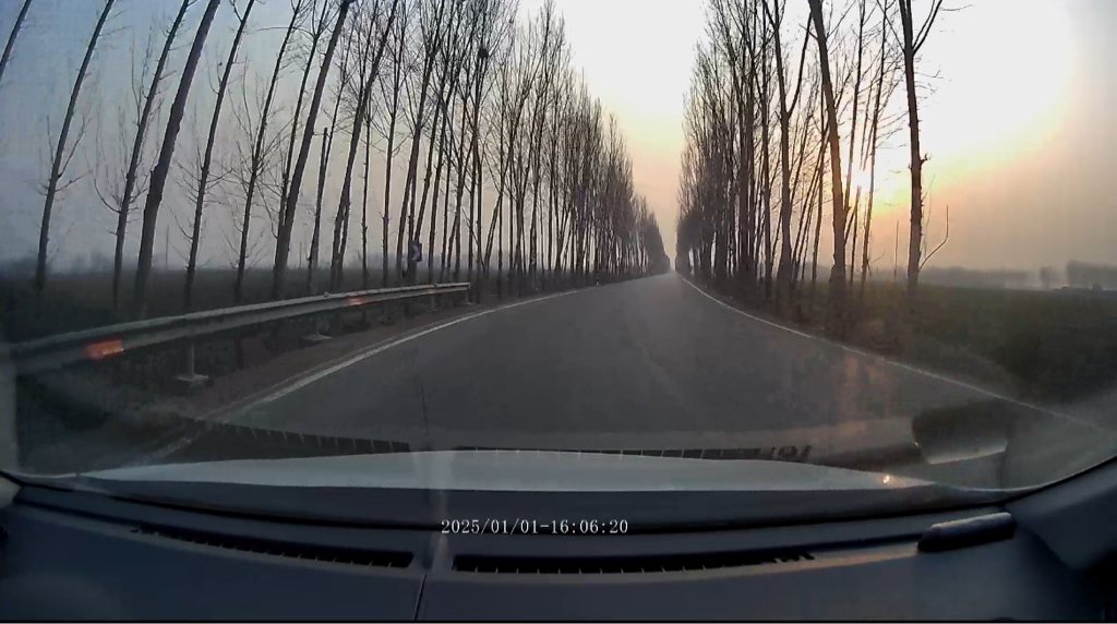 公路两边都是农田,路高田低,路面比两边的田地高出半米左右,路和田地之间,有大约一米多宽的路基以保护公路