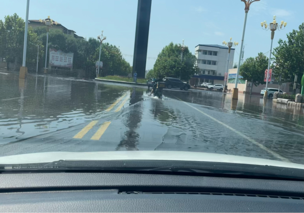 午间去,路上人很少,尤其这几天街道成河,人车就更少了,有次游泳回转,我慢慢的在水里行车,忽然有个外卖小哥骑着电车快速超过我,电车激起一路水花溅在我的车上