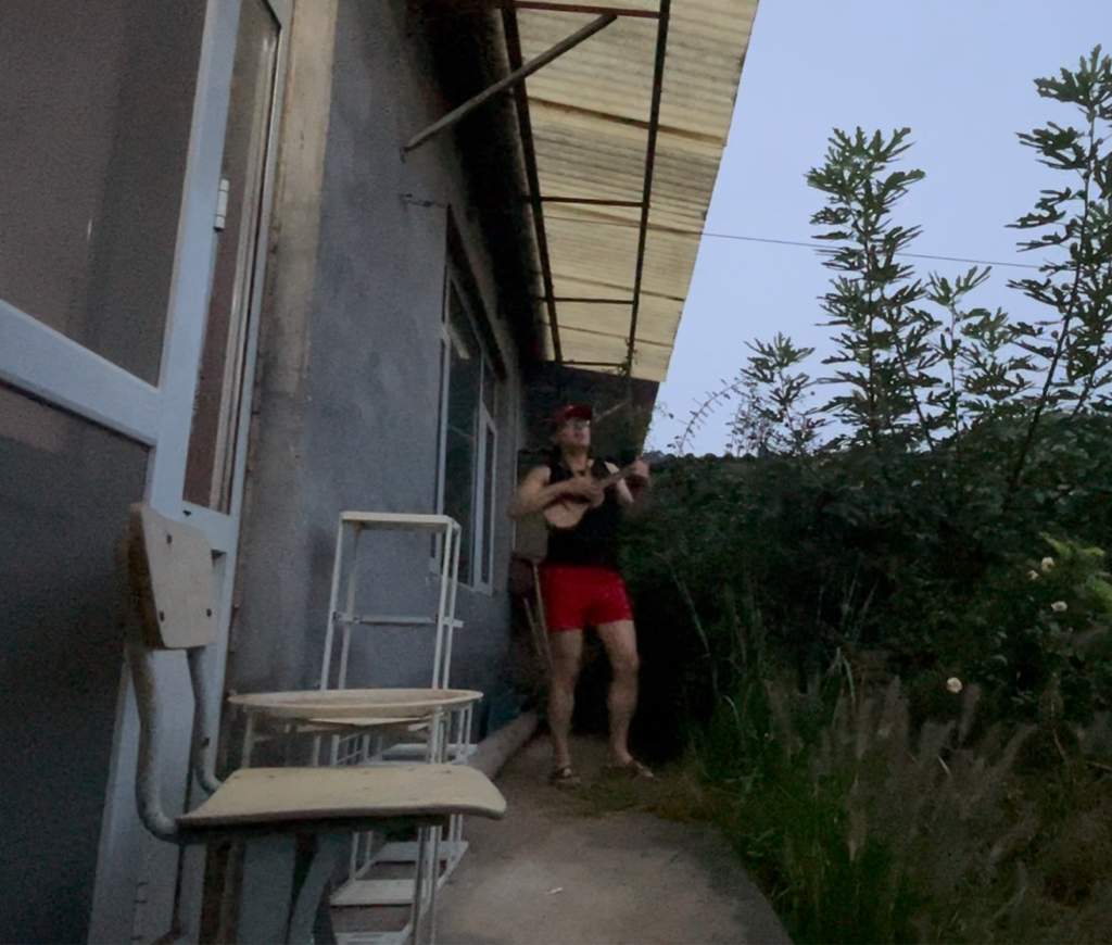 我抓起尤克里里,跑到外面檐下,就着雨丝和微风,对着天空和暮色,弹唱了半首“雨的旋律”