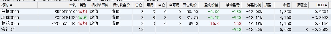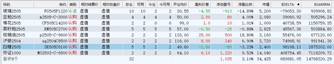 今天比较有意思的是原油的双买持仓。从call赚钱、组合赚钱,到put赚钱,组合亏钱。虽然原油隐波冲高回落,但比较仍在上涨,继续观察。