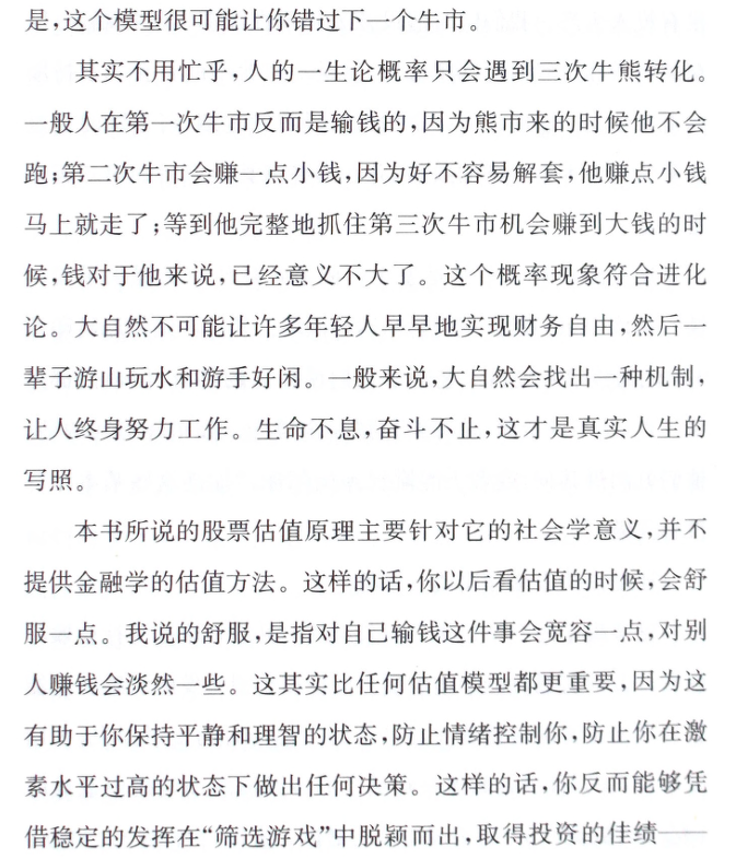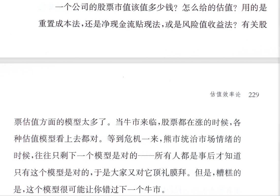 估值原理这本书还是有很多实在话的,除了那句股票就是要把人套住让人踏实工作(大意如此),还有这个