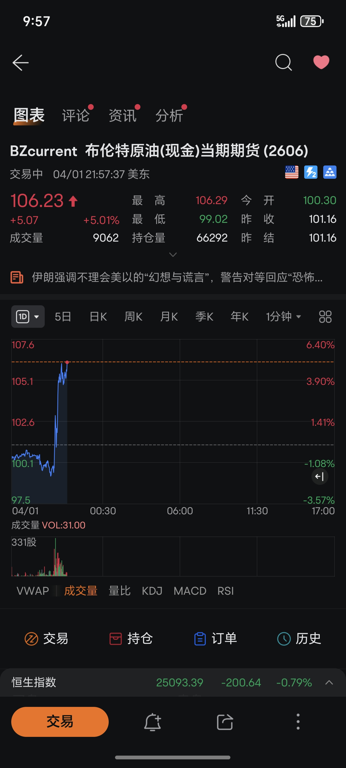 • 伊以互射导弹、波斯湾航运风险加剧→原油供应中断担忧再升温,WTI涨5.46%、布伦特涨4.6%。
