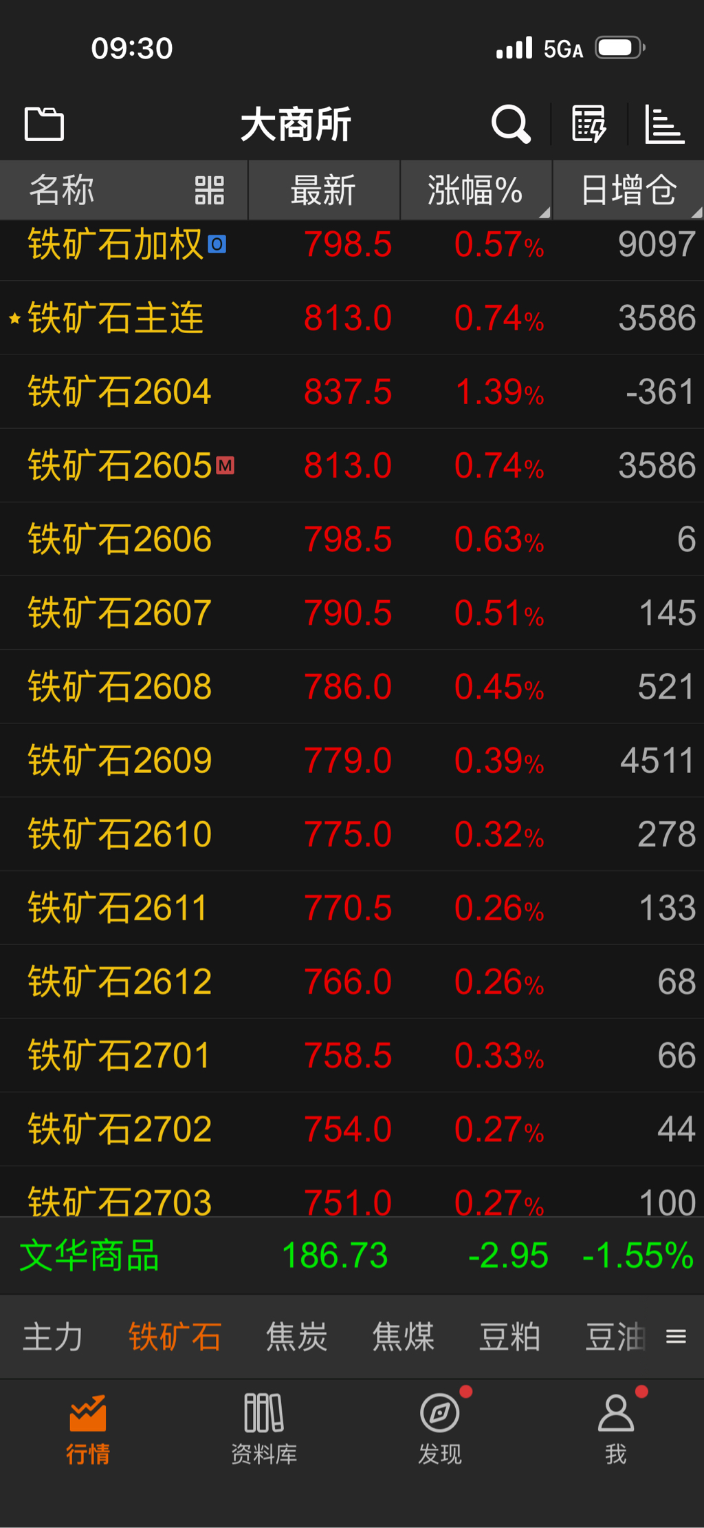 日期 I2605收盘价 I2606收盘价 收盘价差(元/吨)