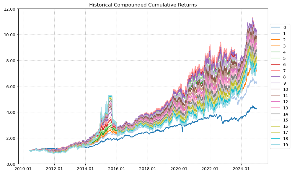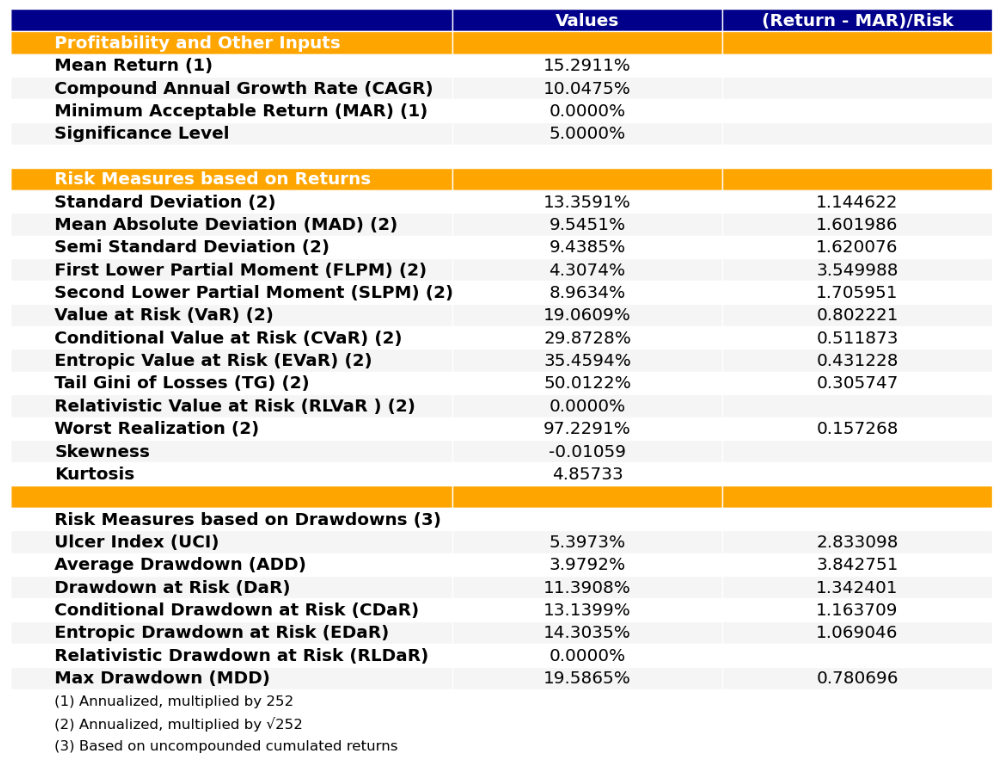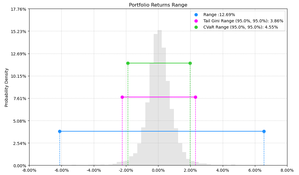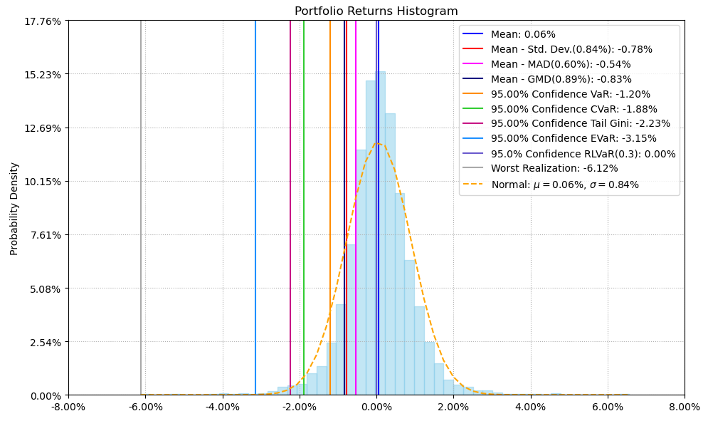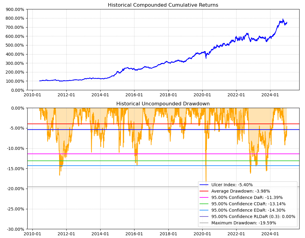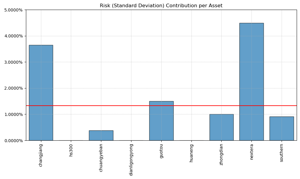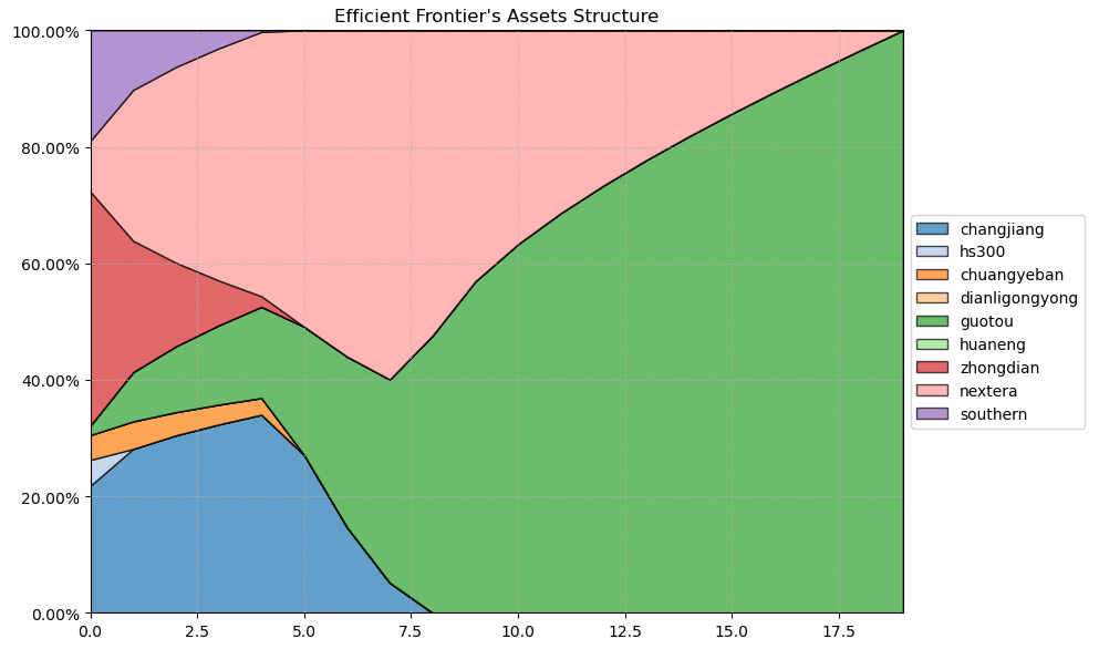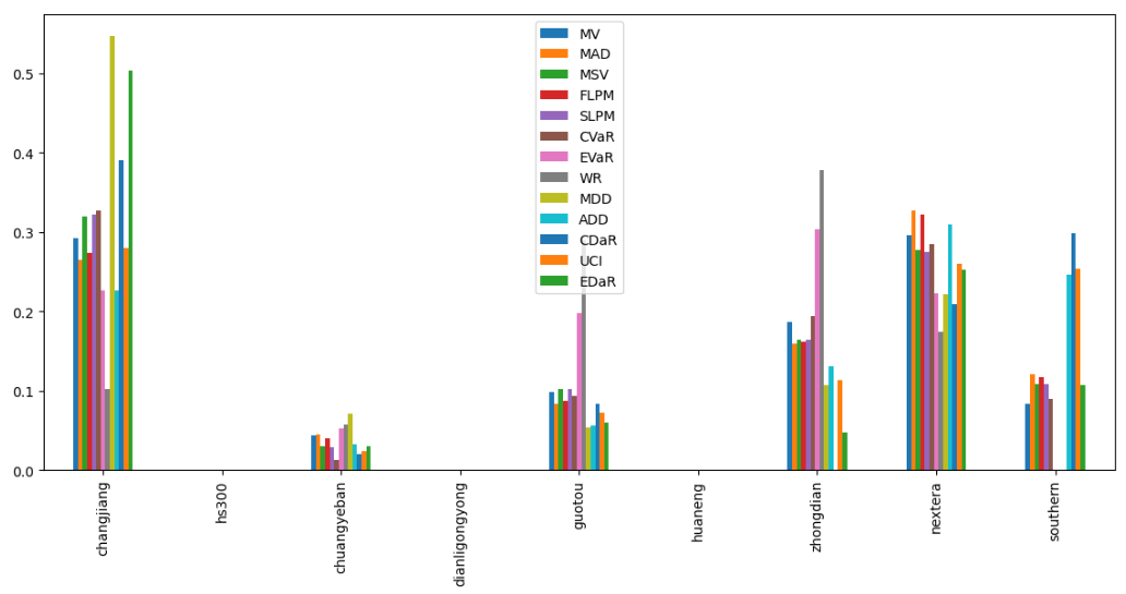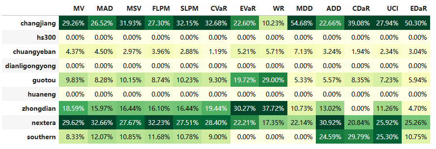 最后看下整个投资组合的情况,日度均值回报在0.06%,比上次测的电子元件行业低了一半,但相应地4.55%的CVaR波动也会低很多。