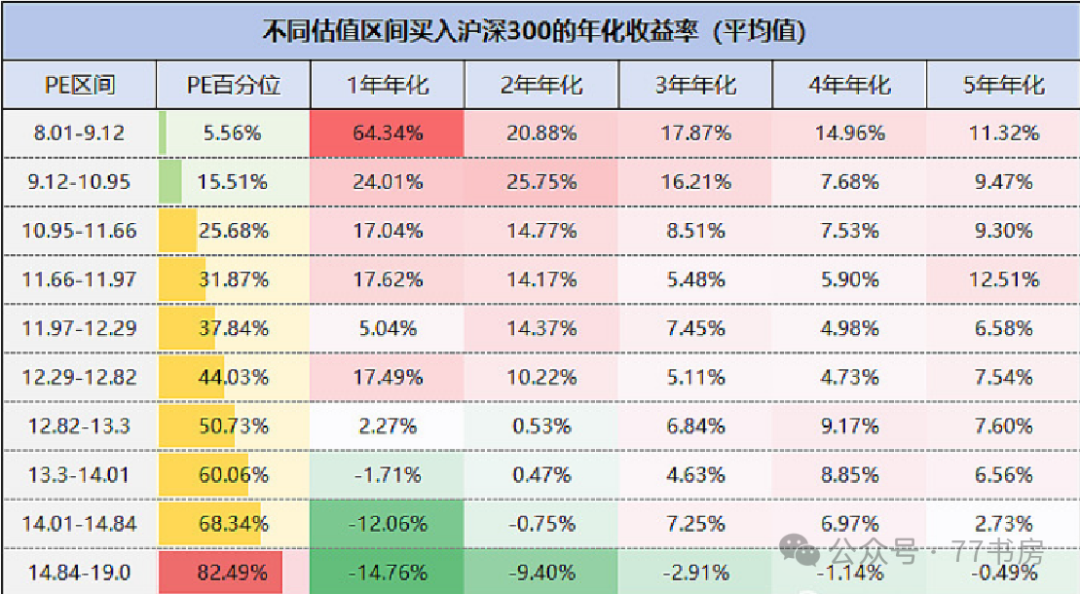 有很多方法,比如定期定投(如每月初买入1万元)、摊薄成本法(如每下跌10%买入10万元)等,基本思路其实都是多次买入避免买入成本过高,这里以沪深300为例,在不同PE值和PE百分位买入,只要买入位置不是特别高,其收益基本达到预期。