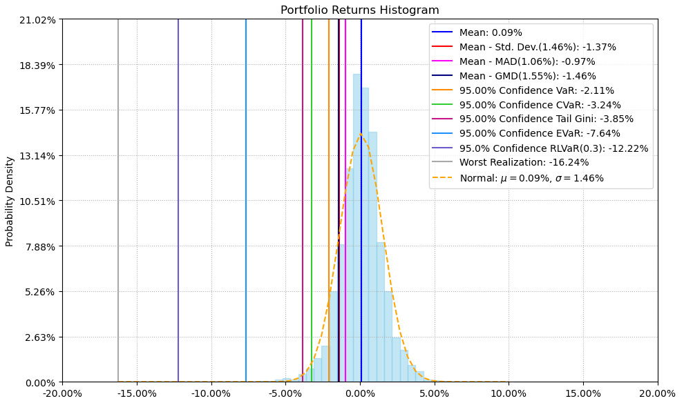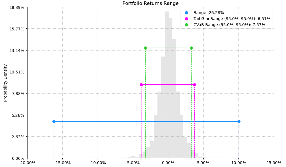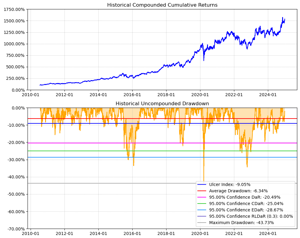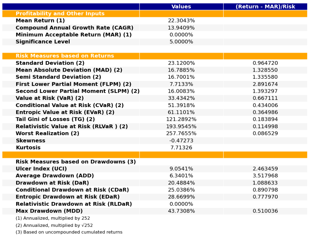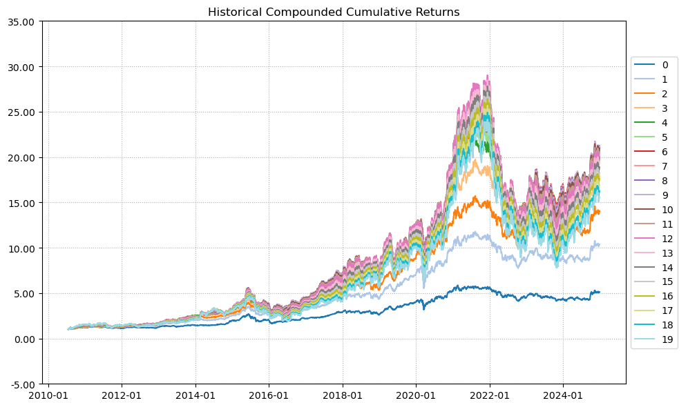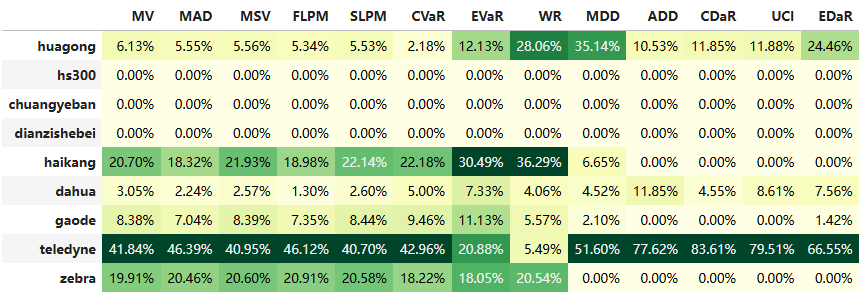 最后看下整个投资组合的情况,日度均值回报在0.09%,比上次测的电脑硬件行业低了30%,但7.57%的CVaR波动其实两者之间差不多的。