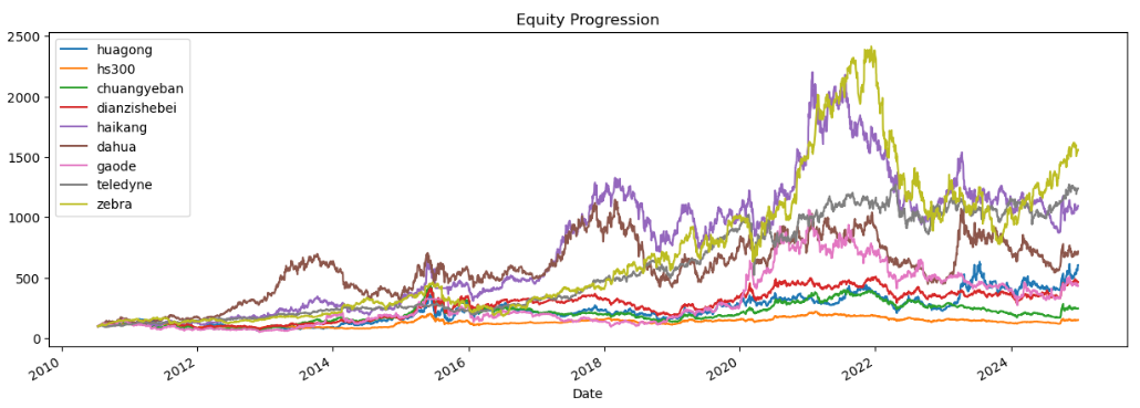 做下回测,选取宽基指数、行业指数、行业内全球对标公司作为一个投资组合进行回溯。