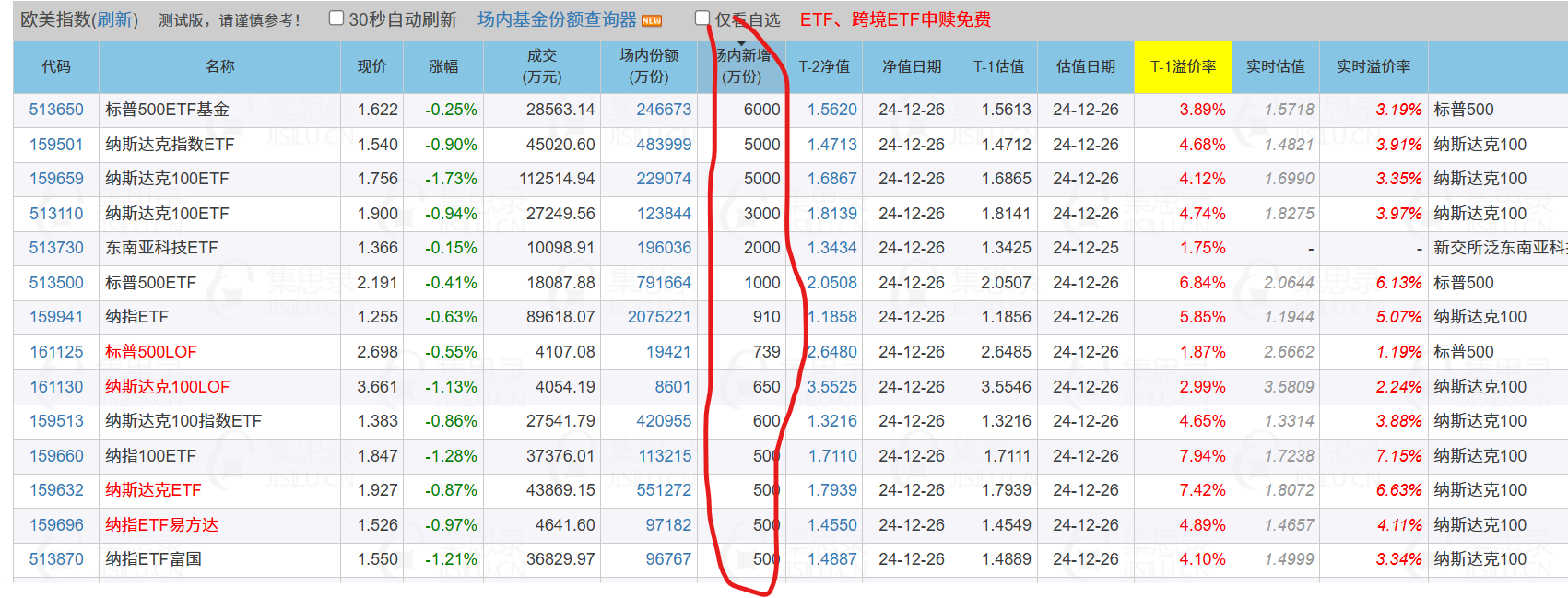 境外etf申购,每天只有3个篮子的额度,每个篮子对应100万份左右的额度