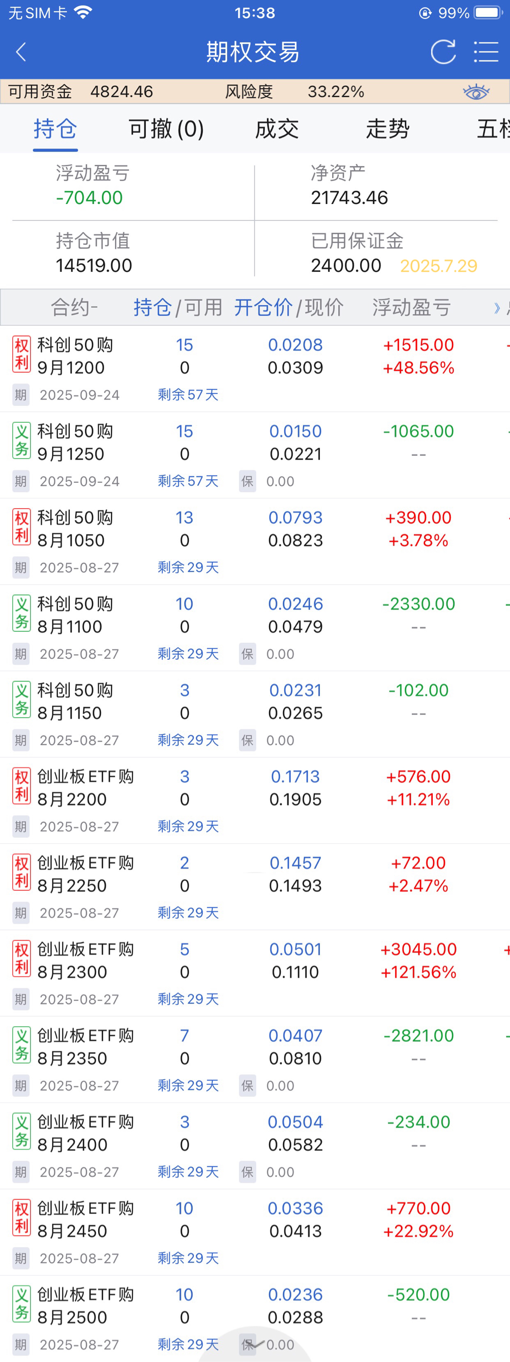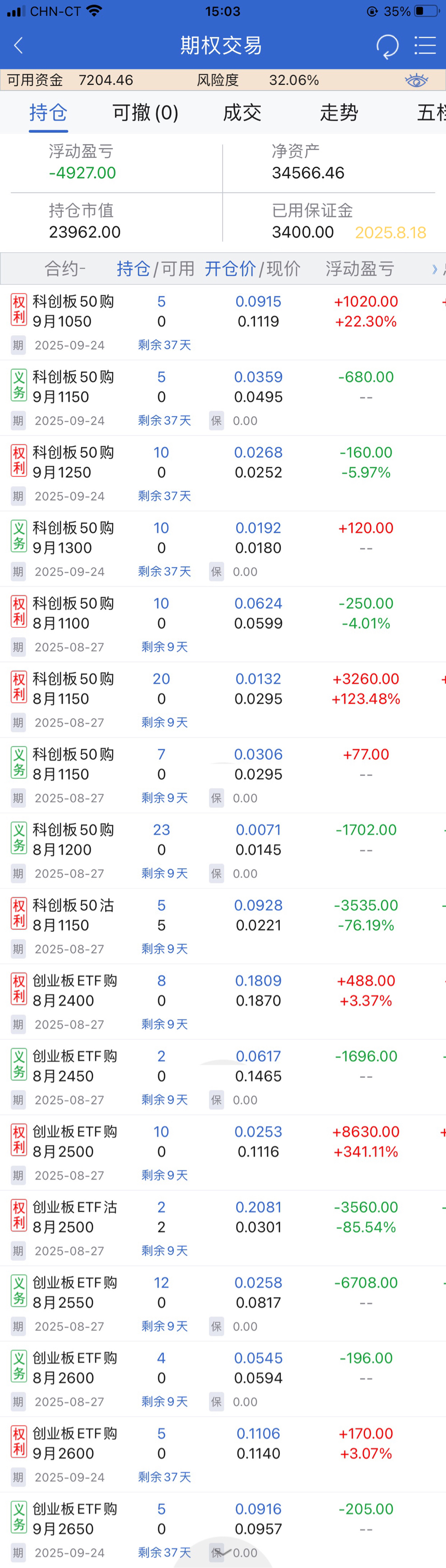 今日继续调整创业板和科创板的持仓,继续加点仓位。前前后后开的合约目前有点复杂了,明天再规整一下持仓吧,今天有点来不及了。