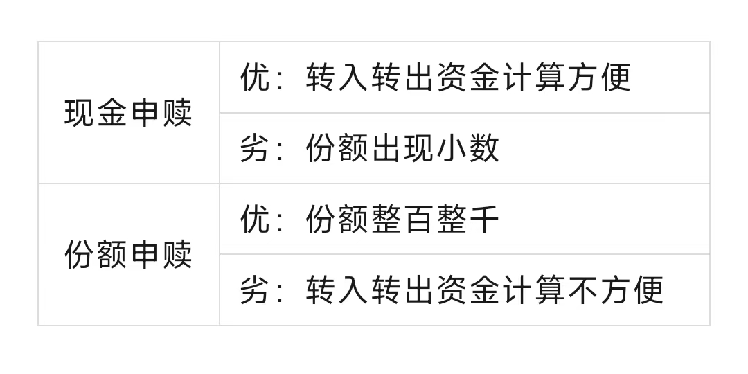 (1)现金申赎 vs 份额申赎(2)不要将投资账户中的现金与消费账户中的现金混淆。