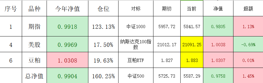 本周净值0.9904 ,仓位 160% ,跑赢中证500约1.45% 。