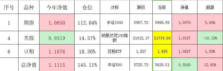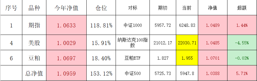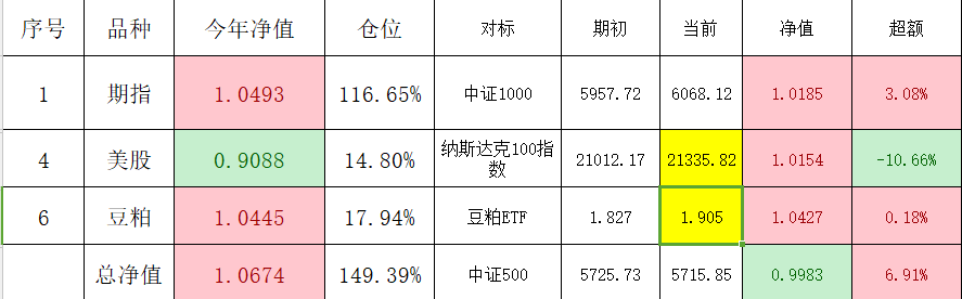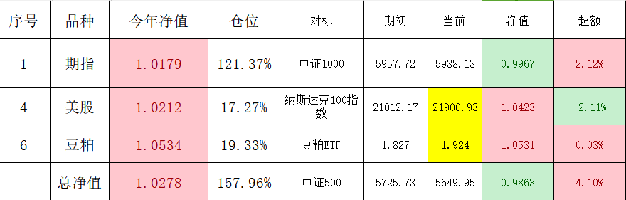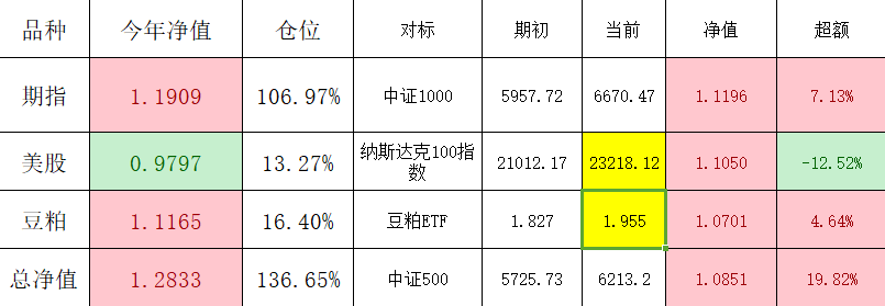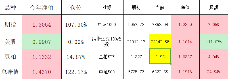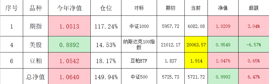 2023年底时,我的持仓包含了A股(消费)、港股、可转债、小市值,这些在2024年底时已经全部清仓。保留了主仓的股指,持有两年半的QDII美股,以及新开的商品豆粕期货,最重要的教训是低相关性。在A股这个一荣俱荣,一损俱损的生态中,要想保持杠杆就只能低相关性,这句话太贵了,请记得点赞收藏。