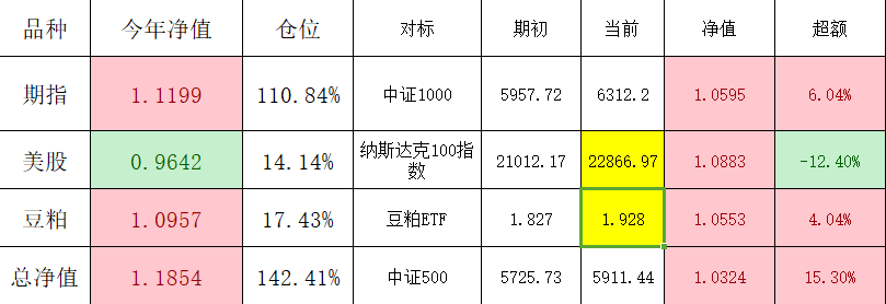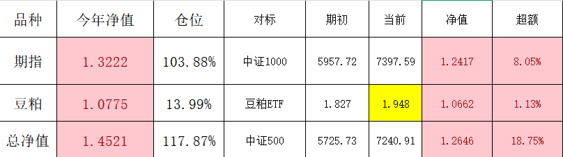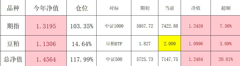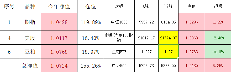 本周净值1.0724 ,仓位 155% ,跑赢中证500约5.35% 。