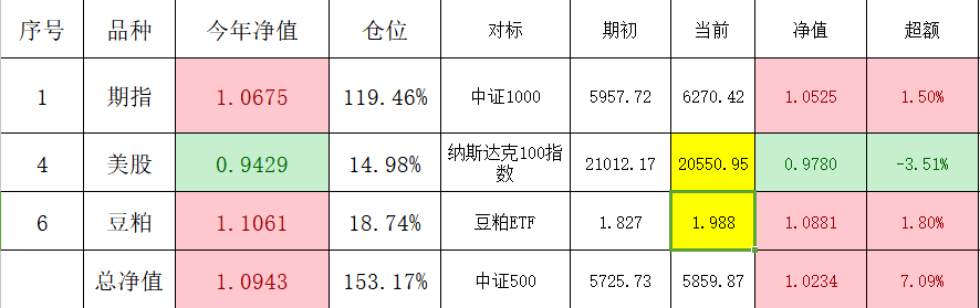 本周净值1.0943 ,仓位 153% ,跑赢中证500约7.09% 。