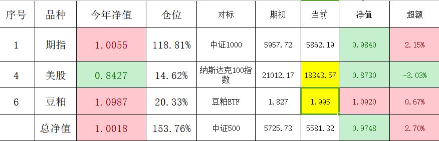 本周净值1.0018 ,仓位 154% ,跑赢中证500约2.7% 。