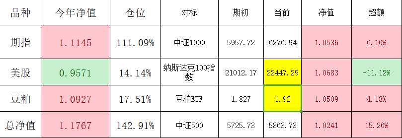 2025年将继续保持150%左右的仓位,目标最终对中证500指数实现15%的超额,也就是如果中证500全年不涨不跌,个人账户能够盈利15%。