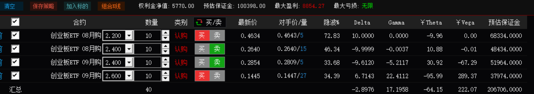 2:我自己,一个认购熊市价差一直拖到到期也没有等到股价下跌调整的时机,最后选择把这个空头组合转换成了下期的双卖组合,相当于滑头,兼顾了多空两个方向。
