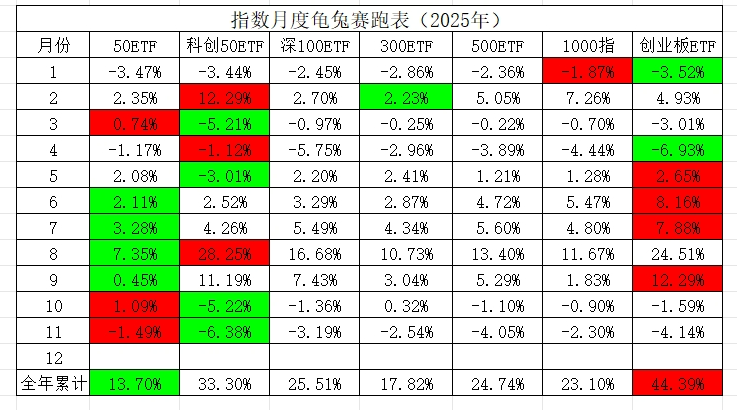 2025-11-25 50ETF 0.78 300ETF 0.84 500ETF 1.00 100ETF 1.16 创ETF 0.92