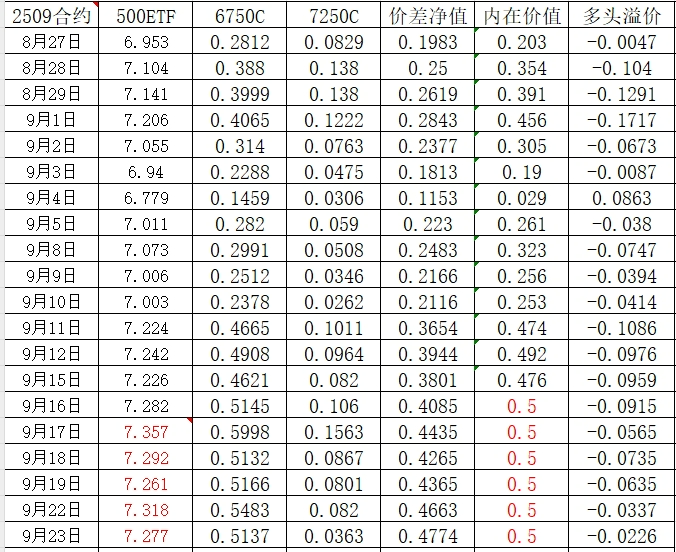 股价如期上涨,卖出的7250看涨期权最终变成了平值附近,时间价值被大量侵蚀。
