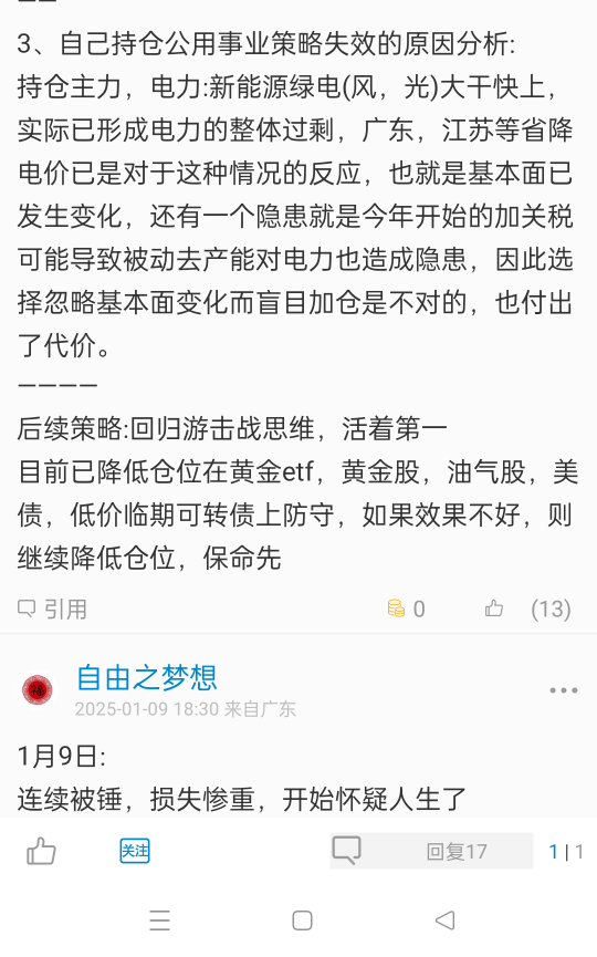 持仓主力,电力:新能源绿电(风,光)大干快上,实际已形成电力的整体过剩,广东,江苏等省降电价已是对于这种情况的反应,也就是基本面已发生变化,还有一个隐患就是今年开始的加关税可能导致被动去产能对电力也造成隐患,因此选择忽略基本面变化而盲目加仓是不对的,也付出了代价。