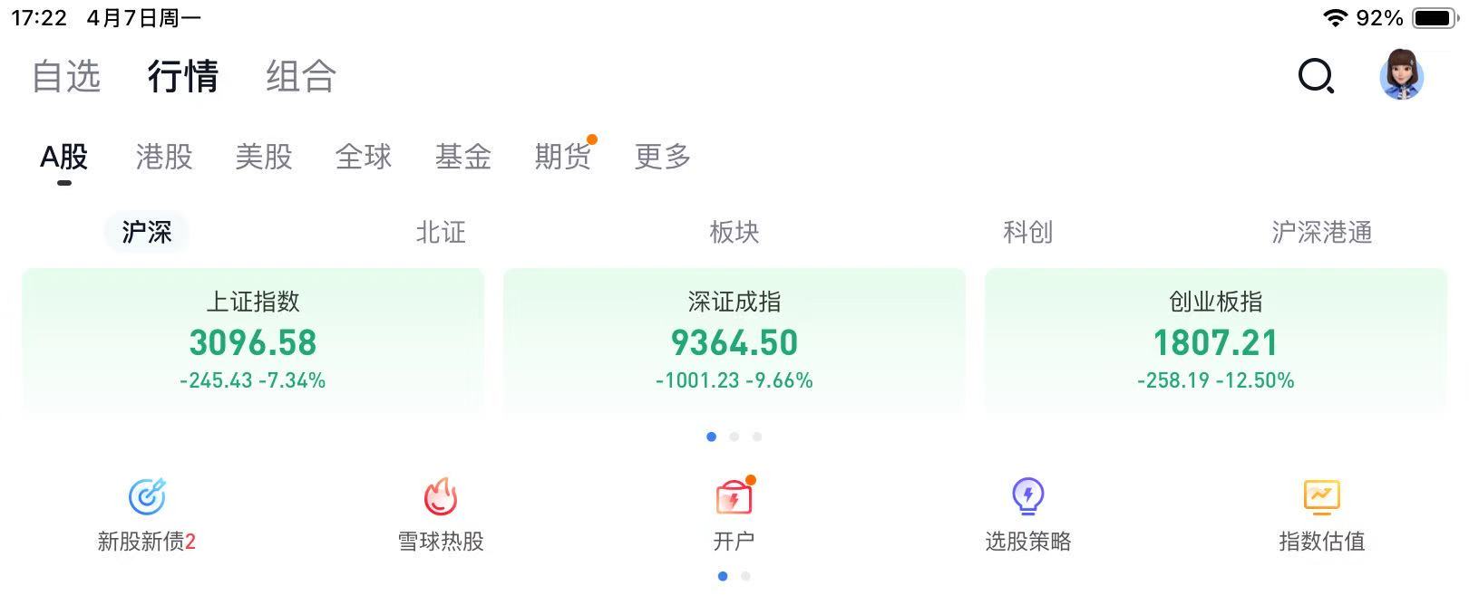 今天遭遇了股灾,A股,港股指数均遭遇大幅下跌,上证指数盘中快跌停了,收盘下跌7.6%,港股指数下跌均超过10%,非常惨烈