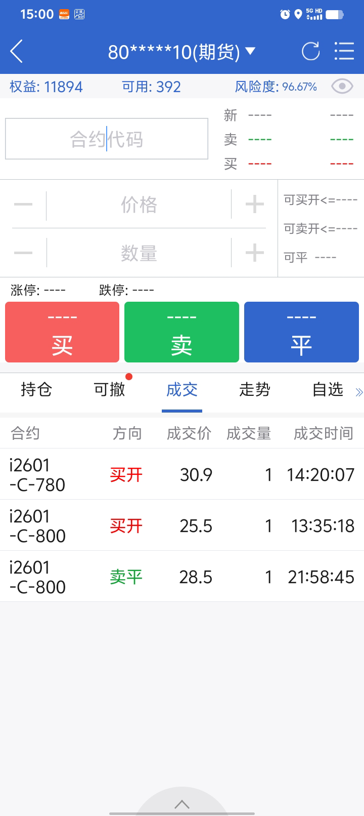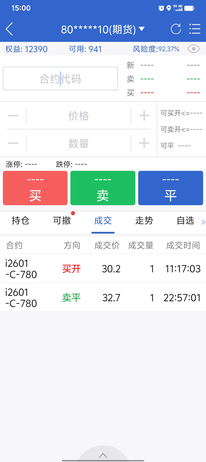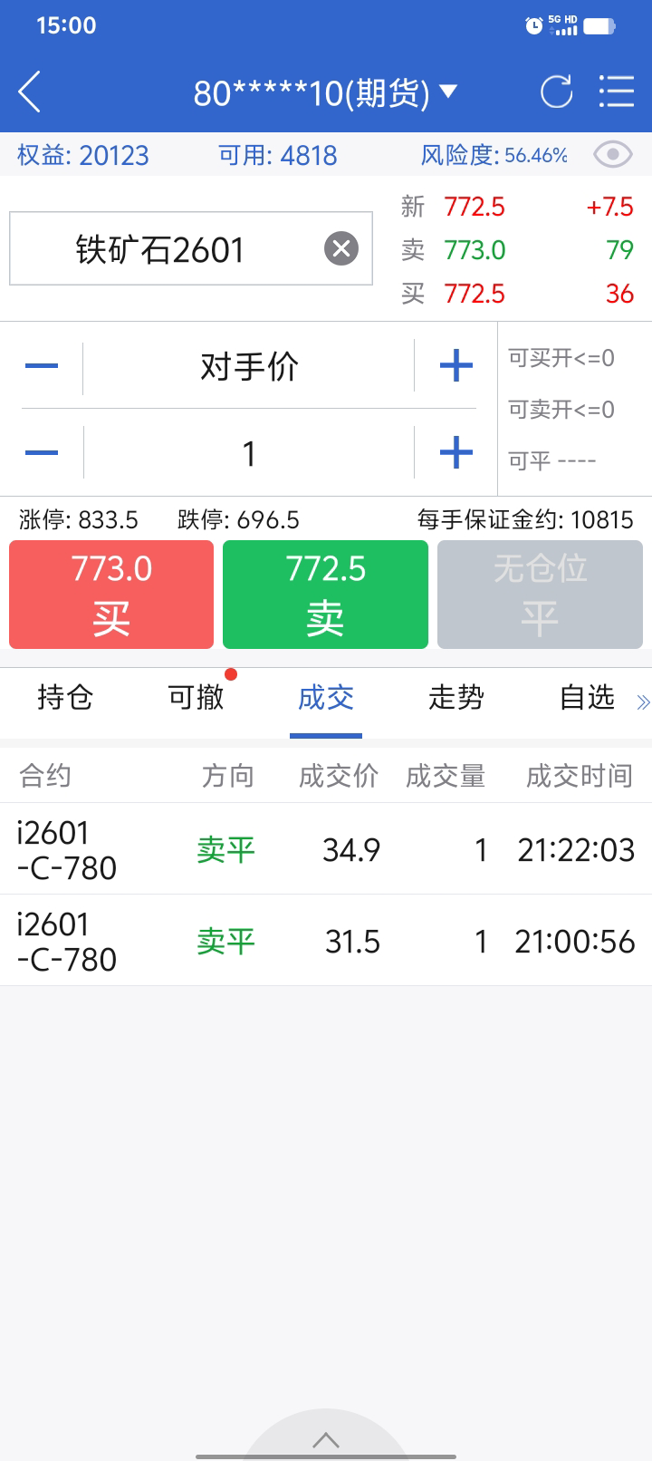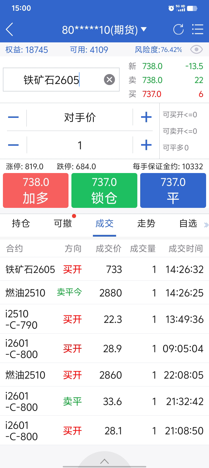 期货账户,期初3.32万。持有铁一手,铁权4手,v两手,sa权3手。为了防止自己折腾除铁油的其他品种,后续铁油阶段性清仓后买入深虚期权(可能是叫这个名字,捂脸),燃油要是有期权就好了。