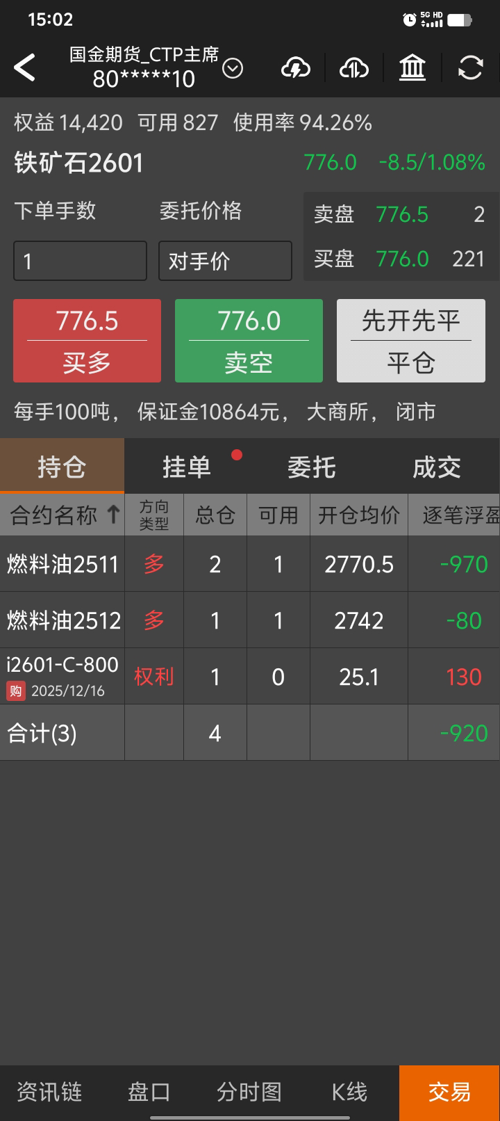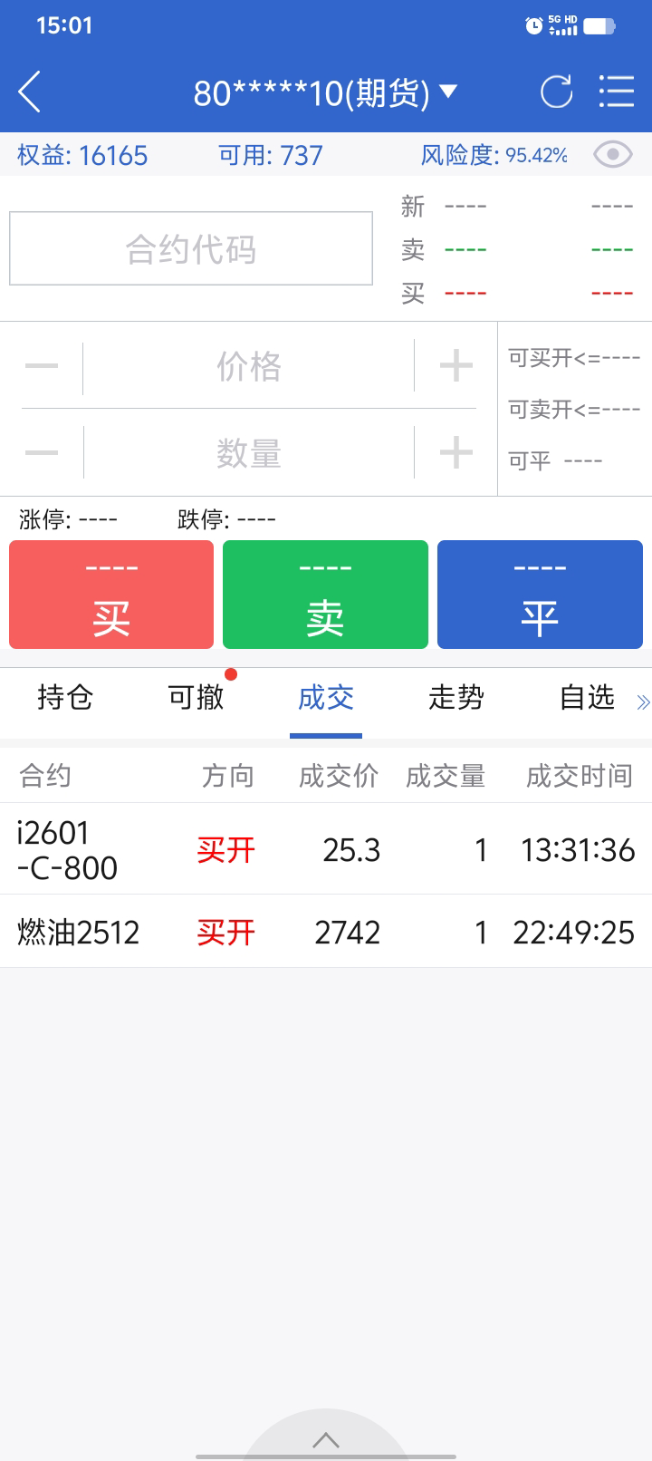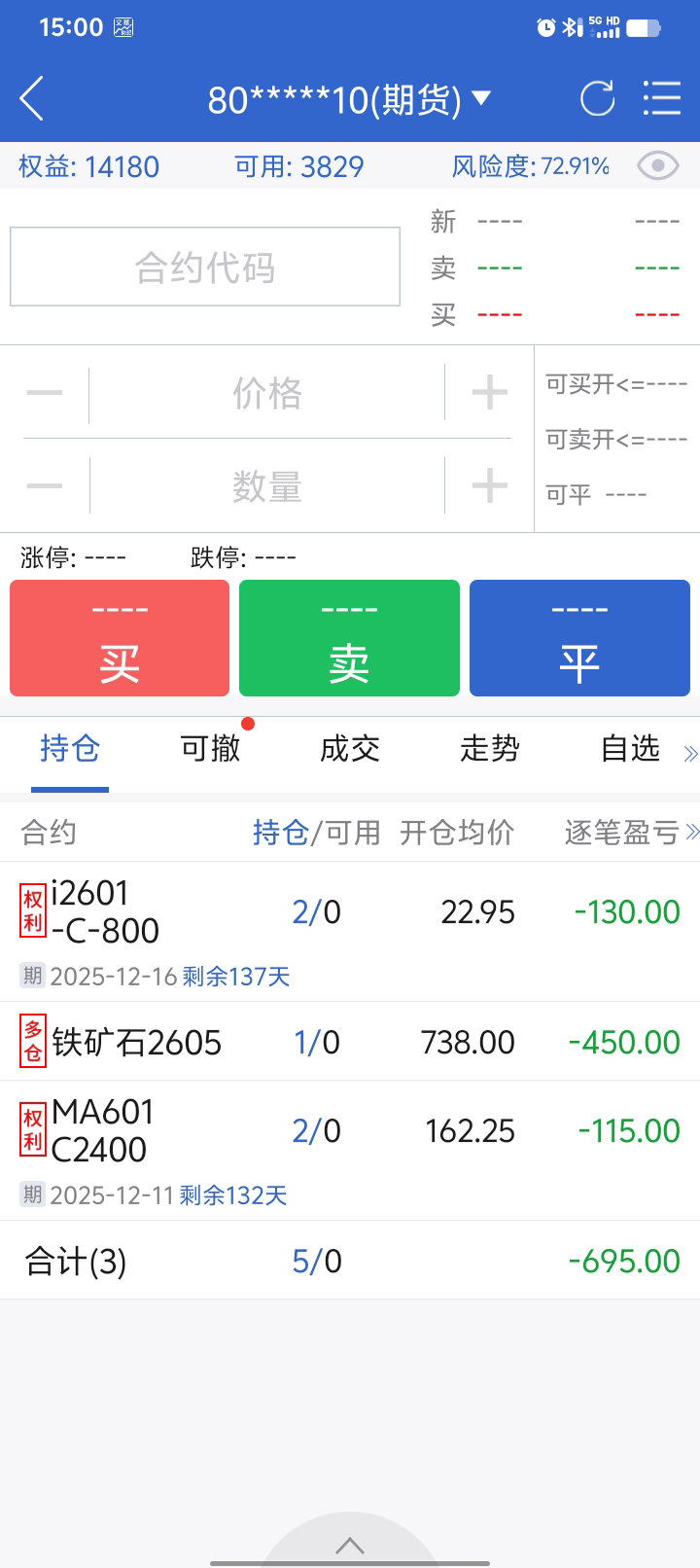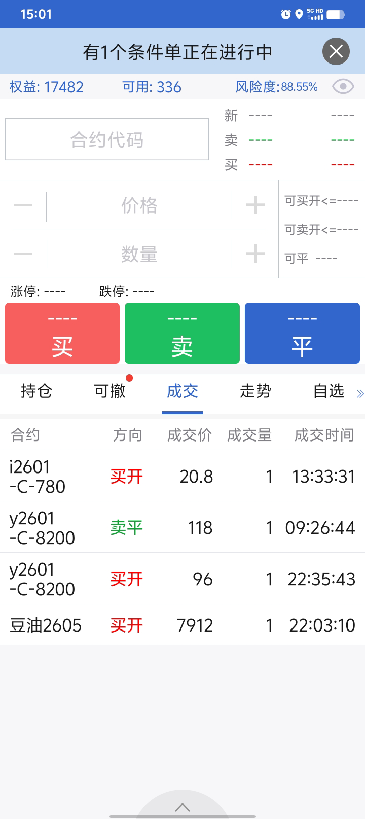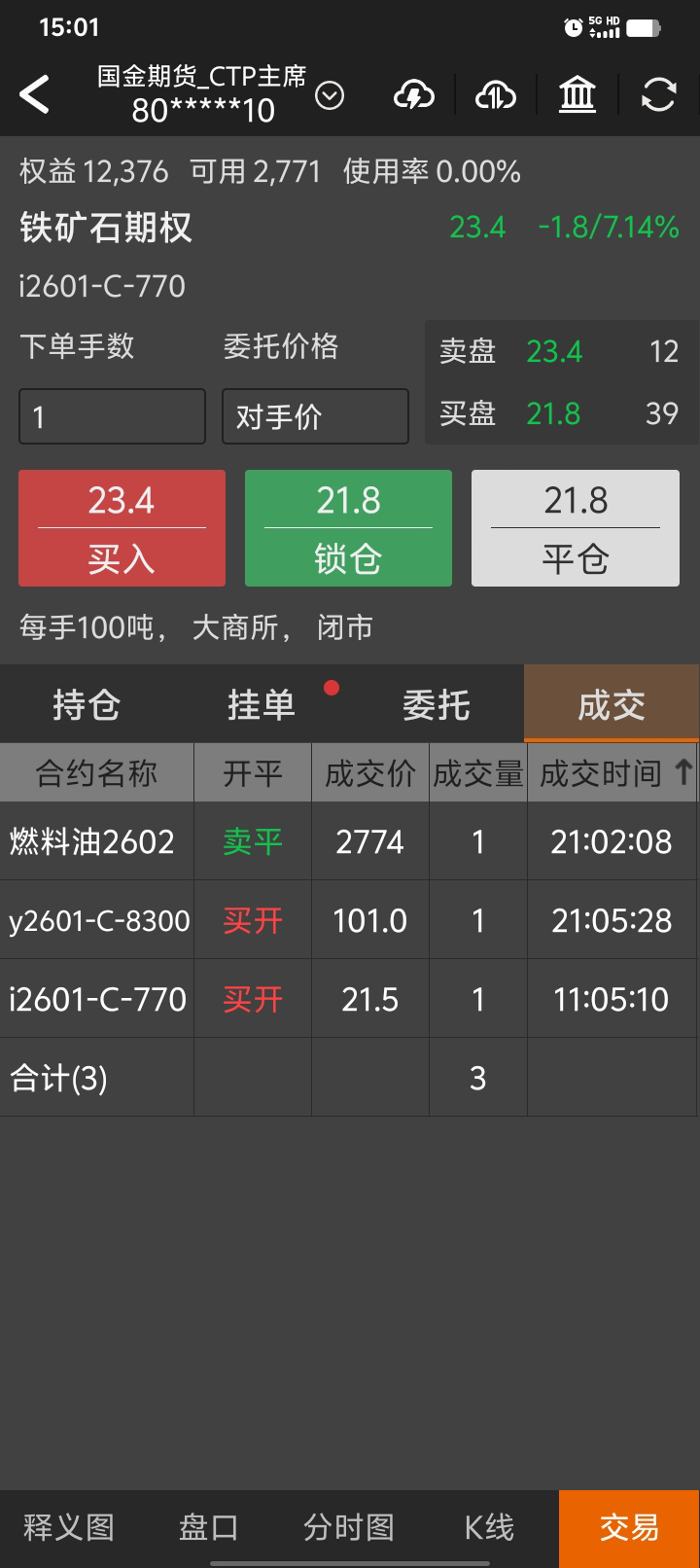 期货账户,期初3.32万。持有铁一手,铁权4手,v两手,sa权3手。为了防止自己折腾除铁油的其他品种,后续铁油阶段性清仓后买入深虚期权(可能是叫这个名字,捂脸),燃油要是有期权就好了。