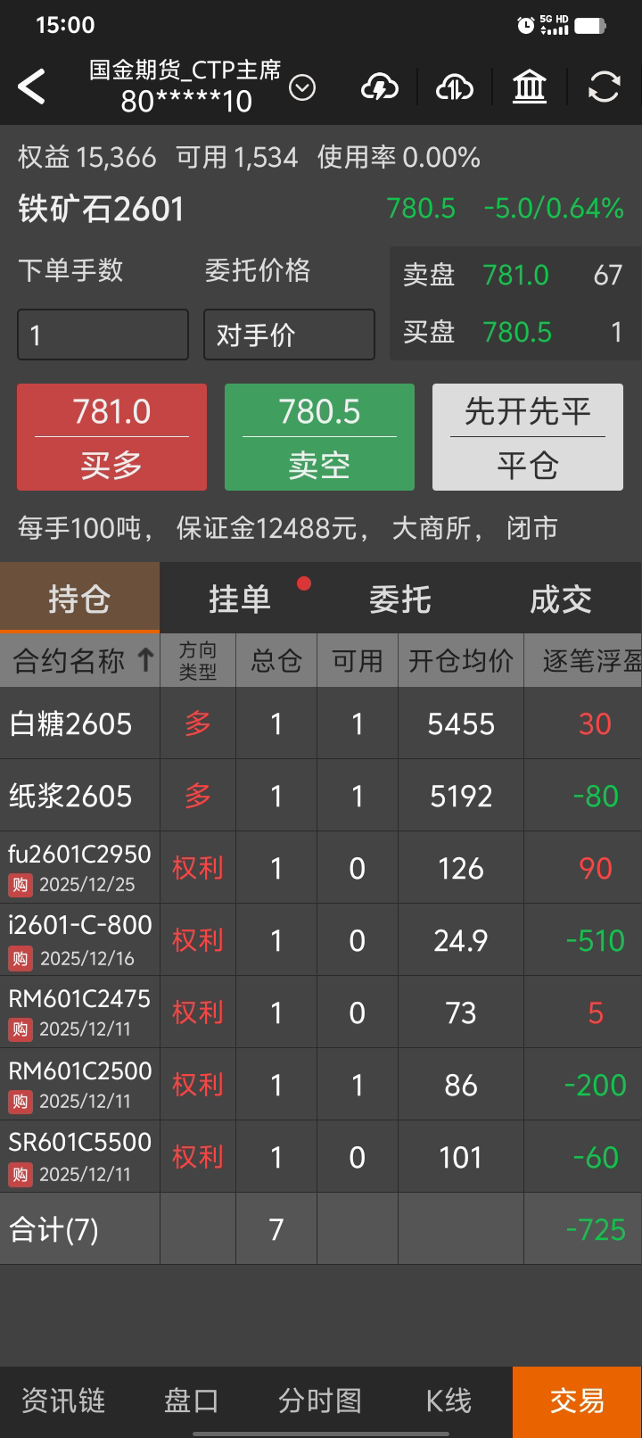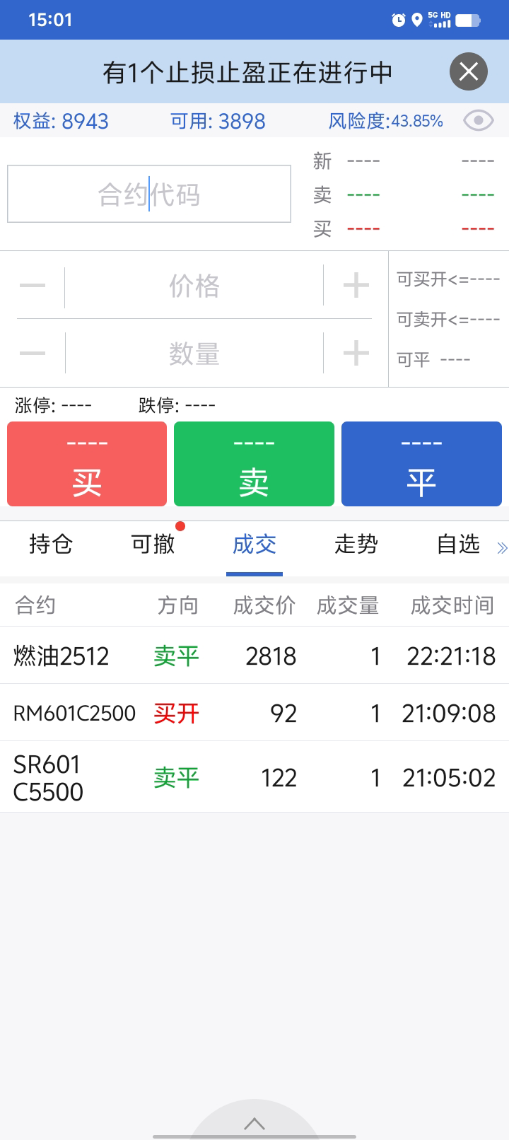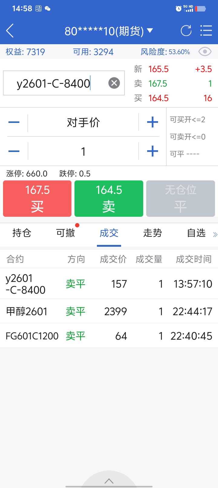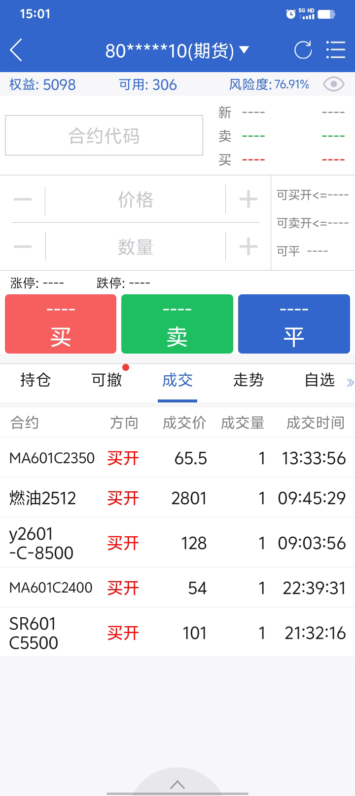 期货账户,期初3.32万。持有铁一手,铁权4手,v两手,sa权3手。为了防止自己折腾除铁油的其他品种,后续铁油阶段性清仓后买入深虚期权(可能是叫这个名字,捂脸),燃油要是有期权就好了。