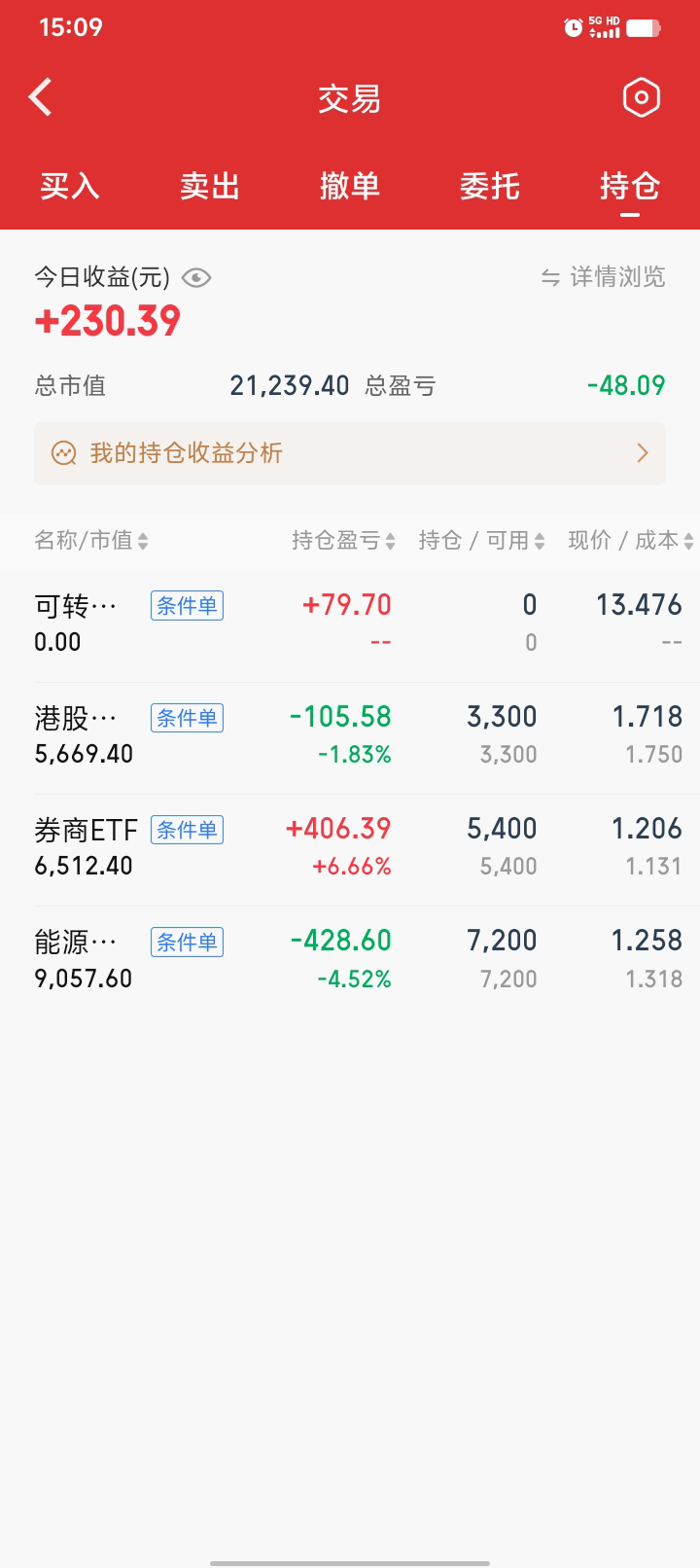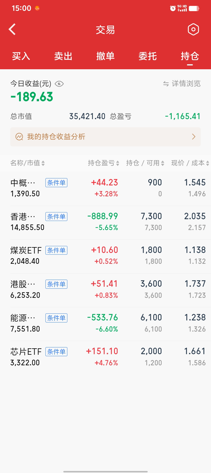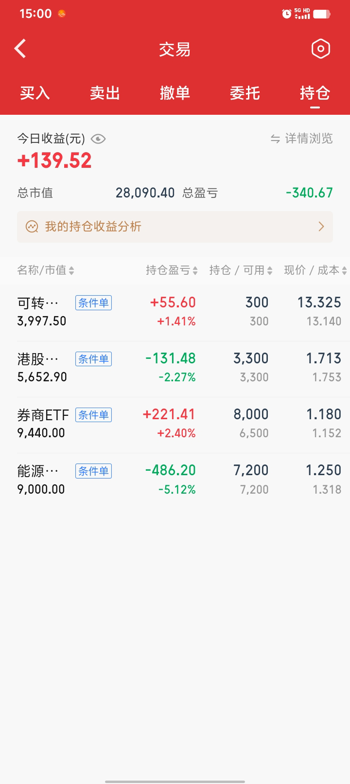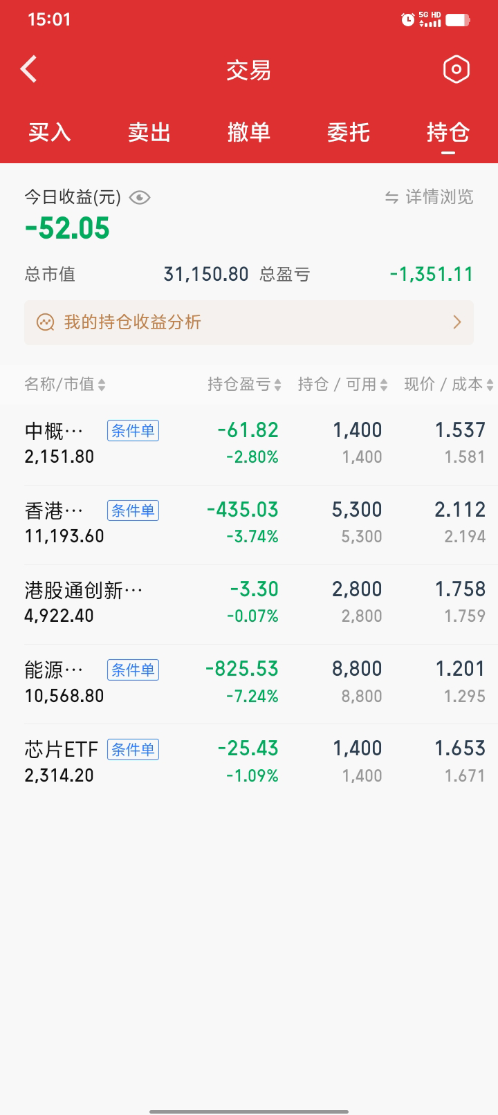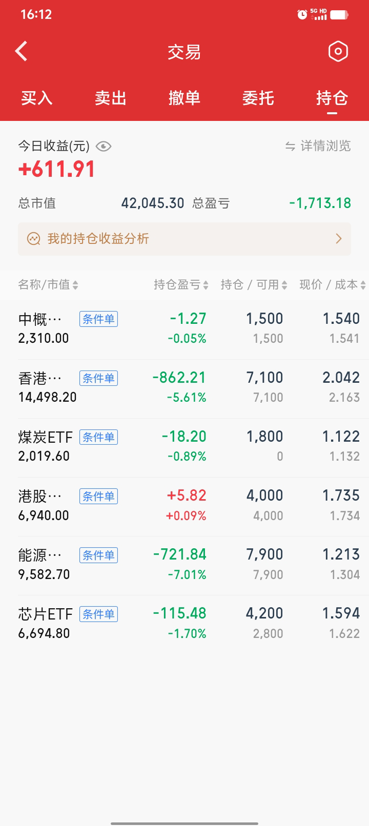 继续网格,清建材e,还剩两个品种了,后面改回网格交易条件单,不用手工了,华泰打电话说我的交易模式让他们亏本了,偷笑。网格间距大点好了。