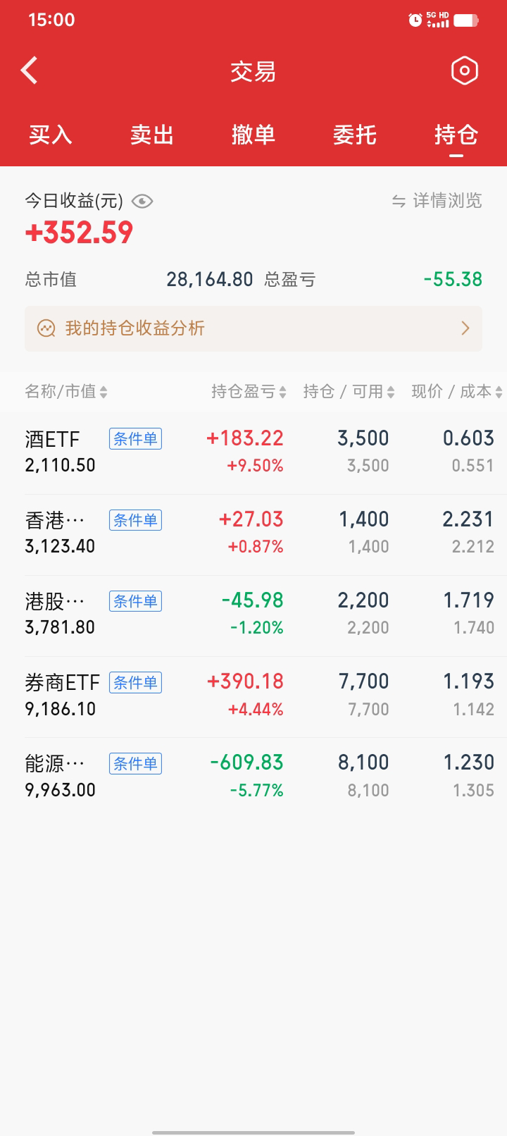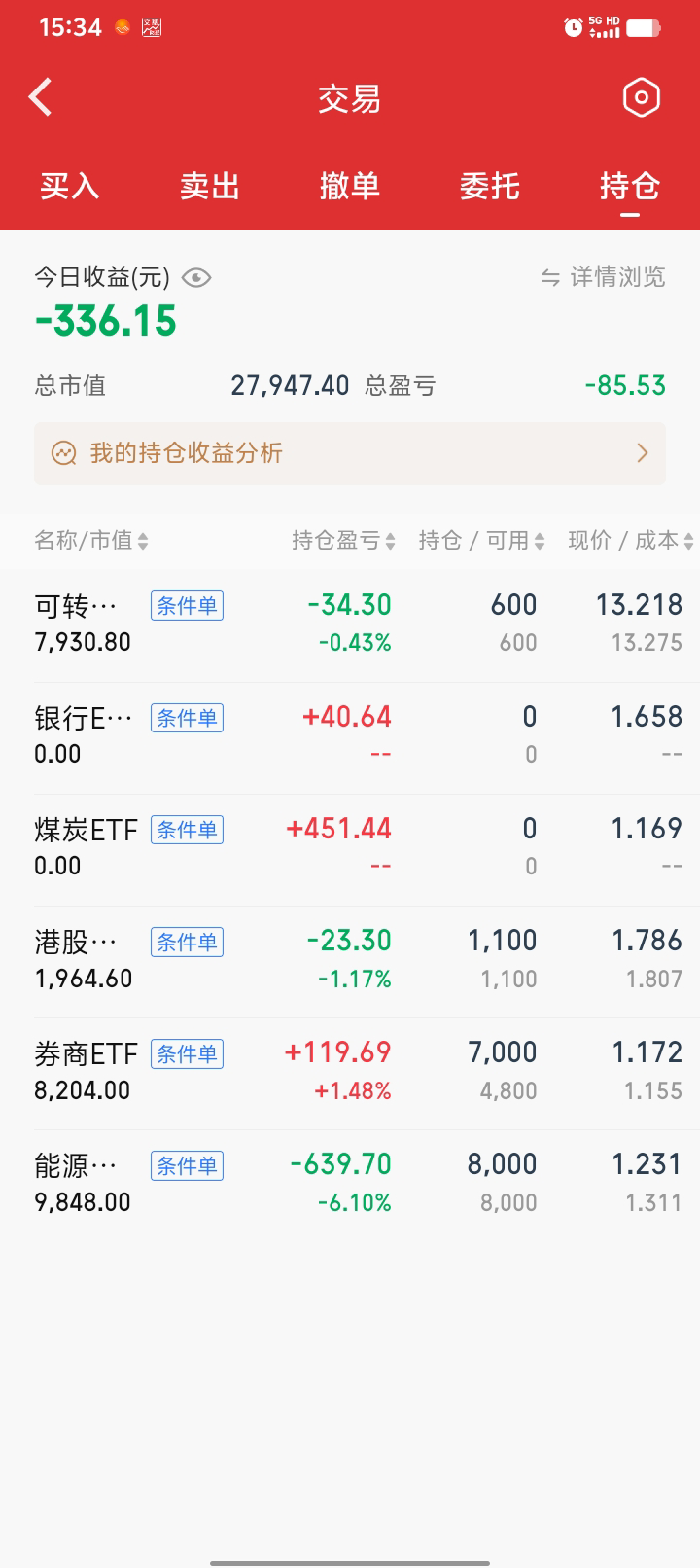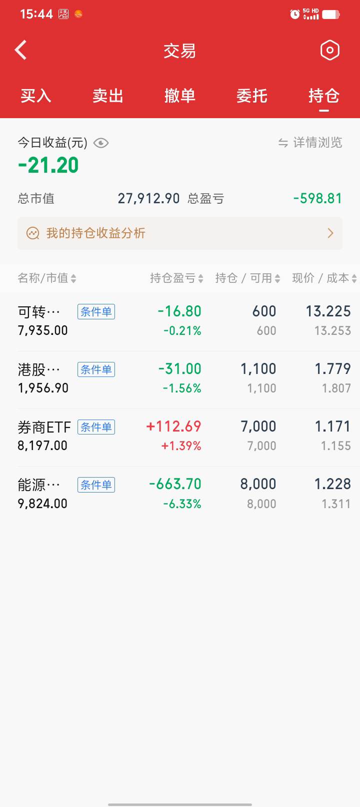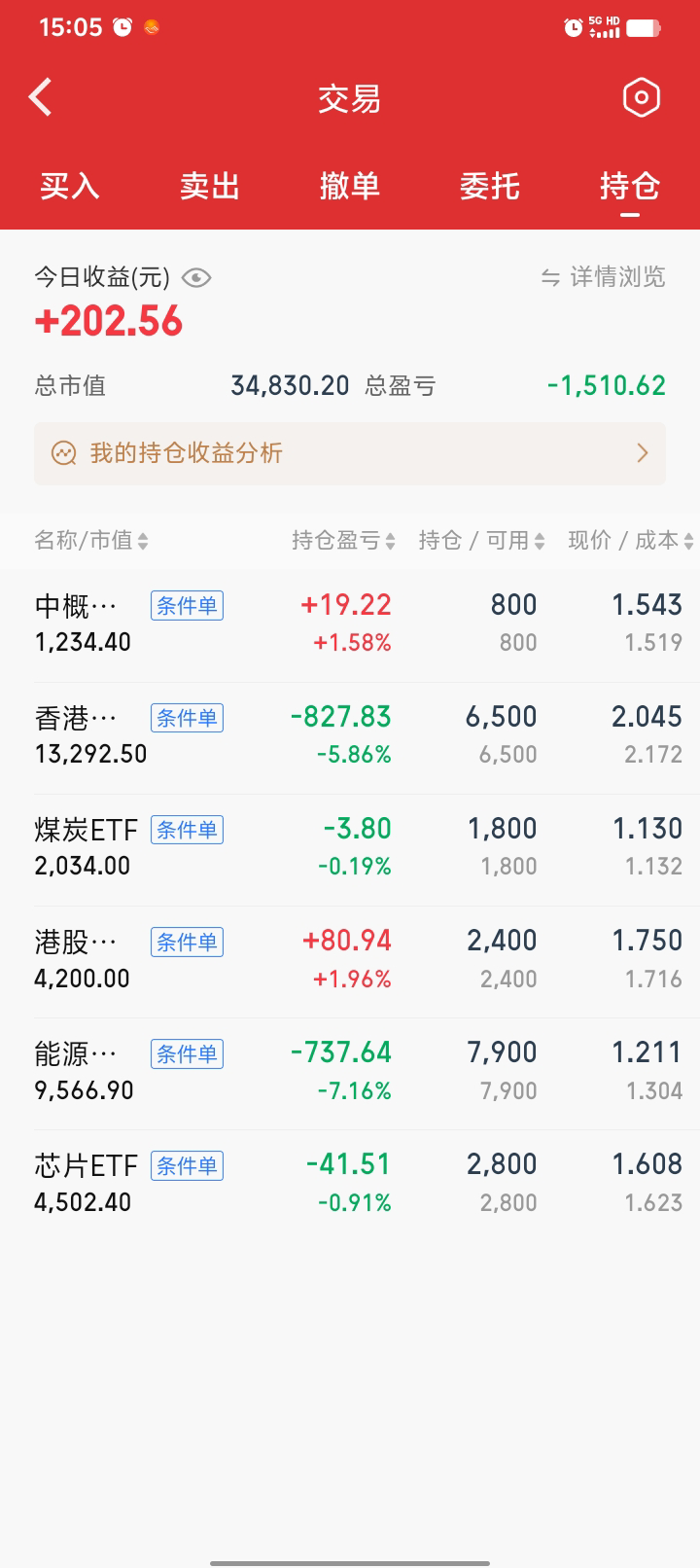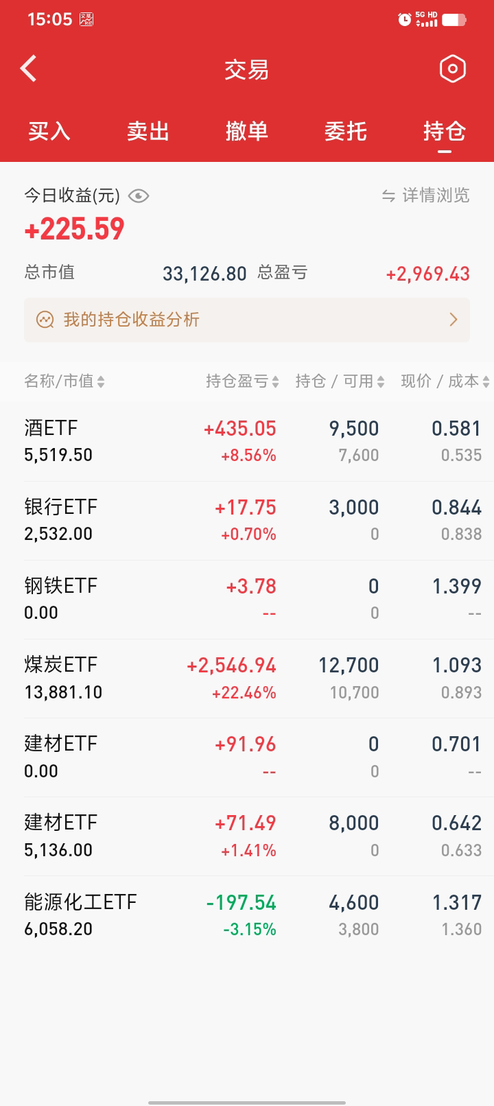 继续网格,清建材e,还剩两个品种了,后面改回网格交易条件单,不用手工了,华泰打电话说我的交易模式让他们亏本了,偷笑。网格间距大点好了。