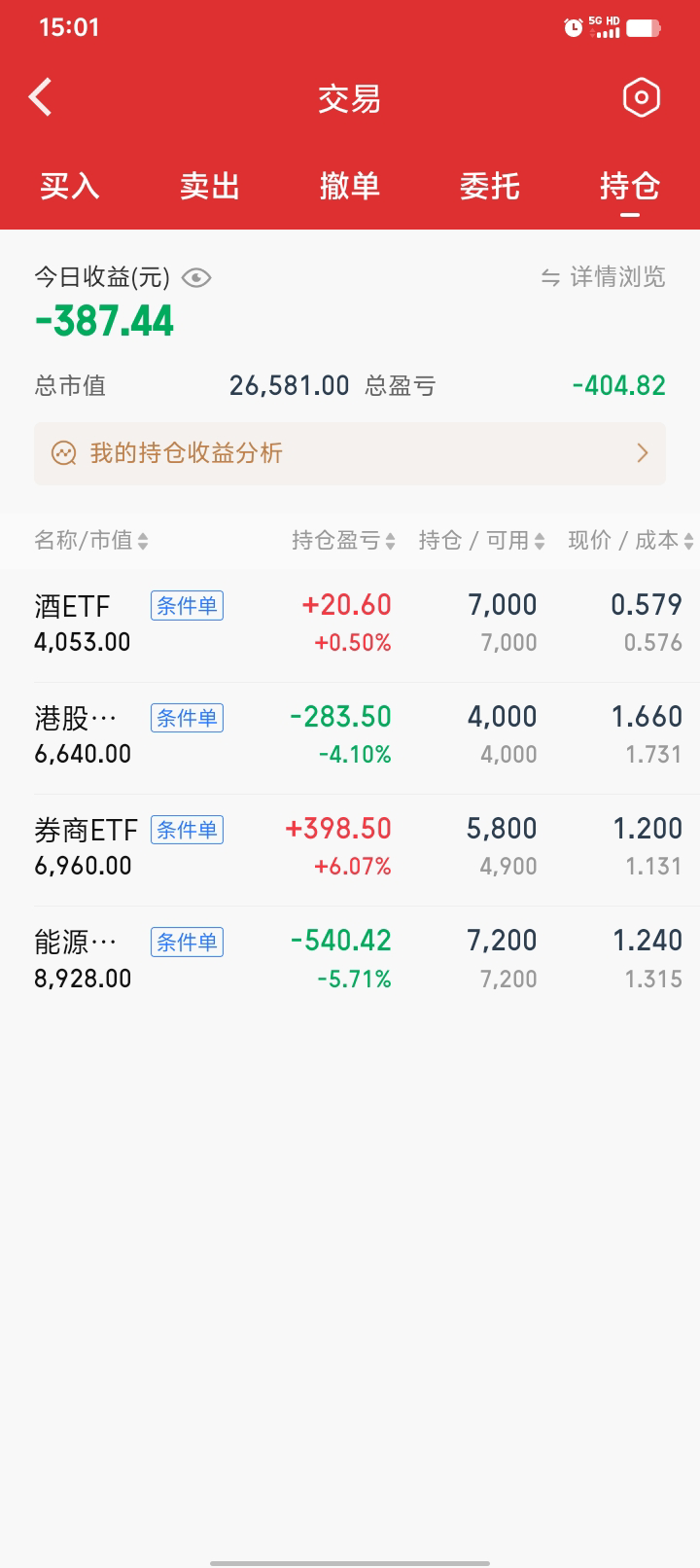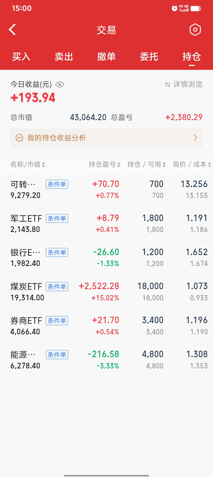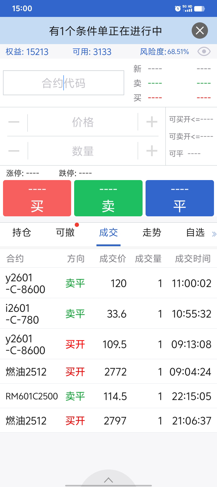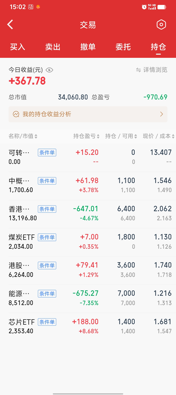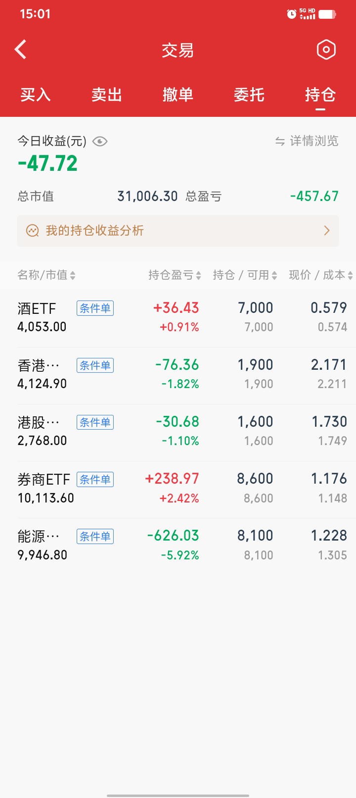继续网格,清建材e,还剩两个品种了,后面改回网格交易条件单,不用手工了,华泰打电话说我的交易模式让他们亏本了,偷笑。网格间距大点好了。