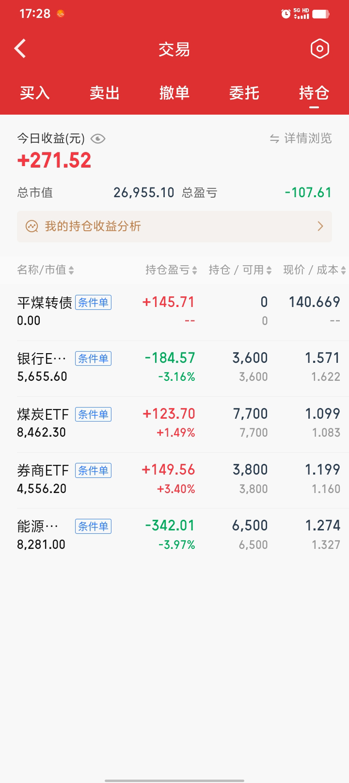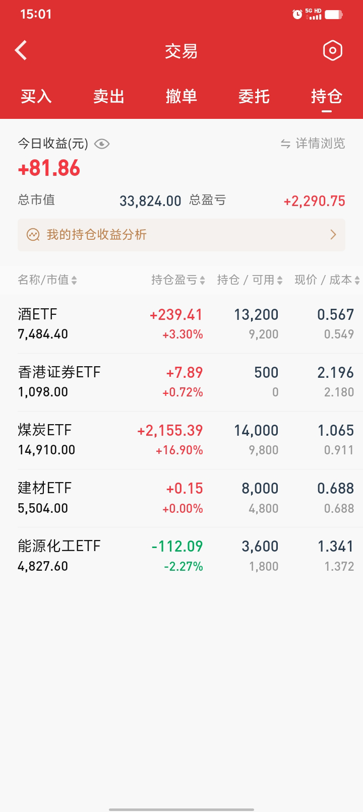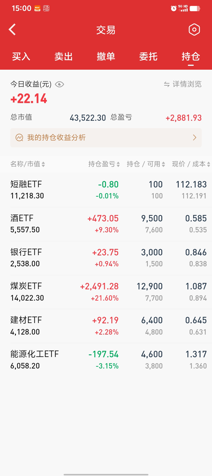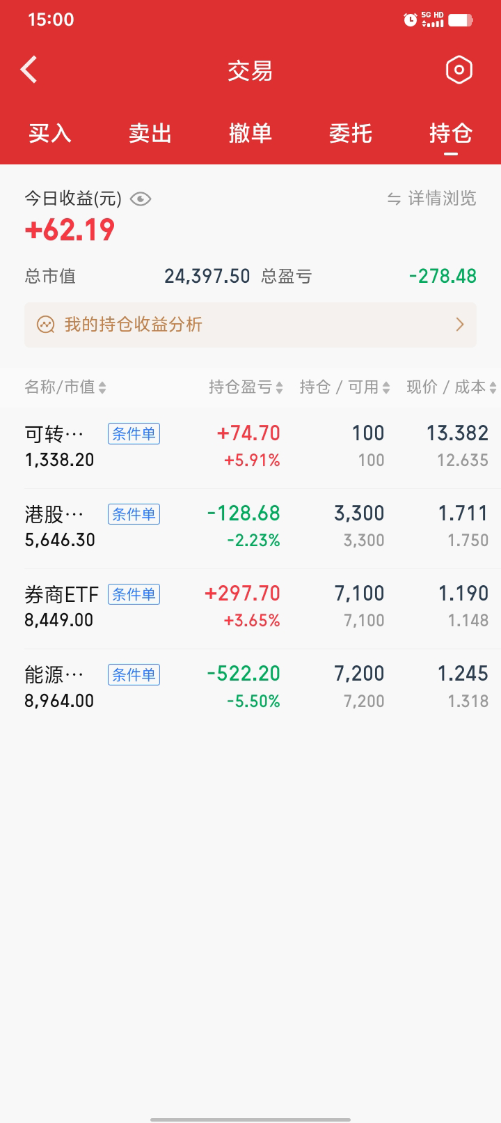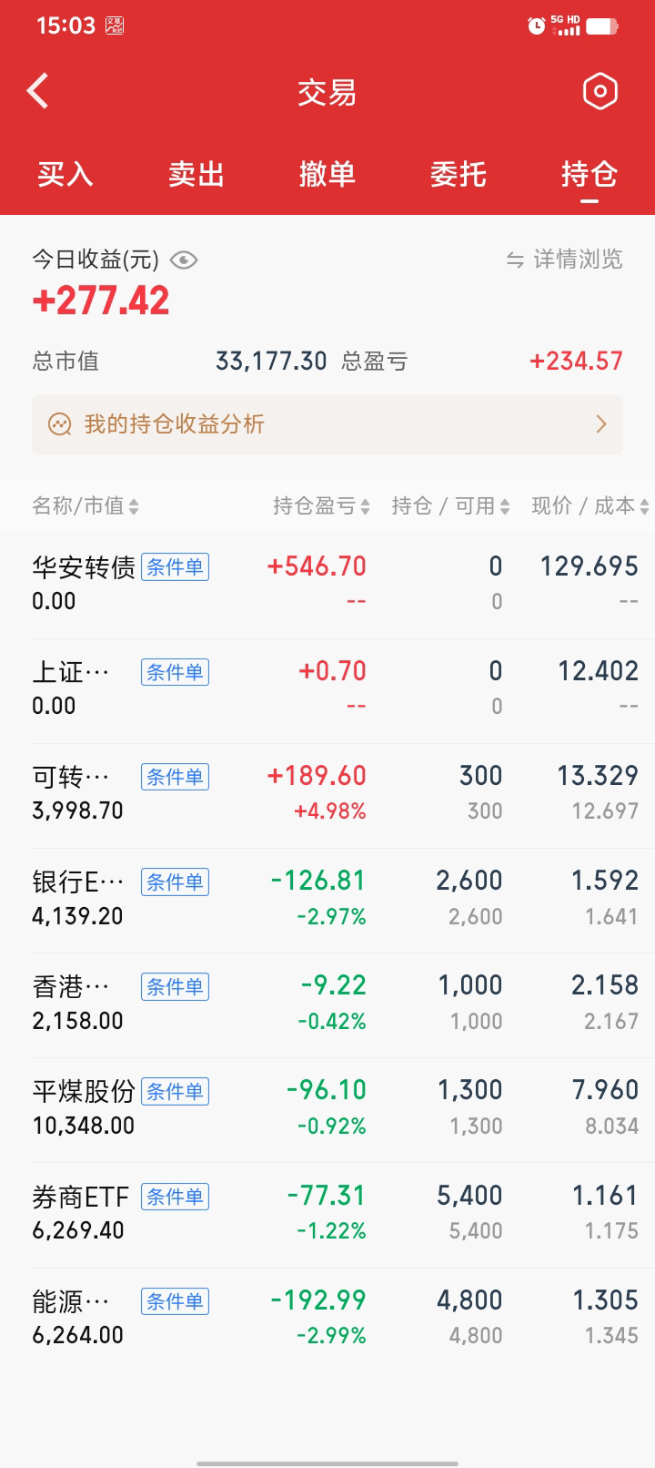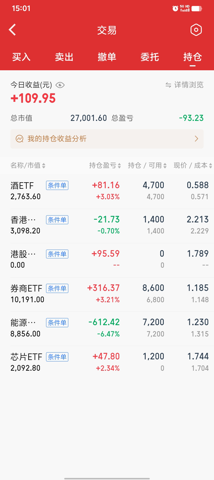 继续网格,清建材e,还剩两个品种了,后面改回网格交易条件单,不用手工了,华泰打电话说我的交易模式让他们亏本了,偷笑。网格间距大点好了。